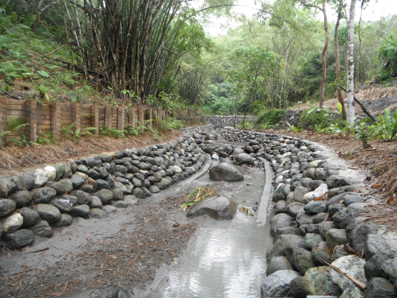治山防災類-光復鄉南富地區野溪治理工程榮獲103-104年度優良農建評選為「佳作工程」。本因現場植被棲地環境良好,工程於規劃設計階段,即將生態補償機制納入防災工作項目,以減少治理工程對棲地造成之損失,維護當地環境。對於常流水位下施作漿砌石護岸,上方以木排樁施作穩定邊坡,並將對現地影響程度減至最低。另以拱石固床工創造平緩溪床,解決溪床刷深問題,並於固床工上、下游拋填塊石創造出生態棲息之環境,可為容易缺水的東海岸山脈乾枯溪流保存大量灌溉用水。本工程節能減碳方面:混凝土與鋼筋減量達144,642kg-CO2符合節能減碳政策。