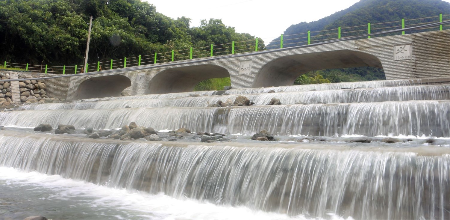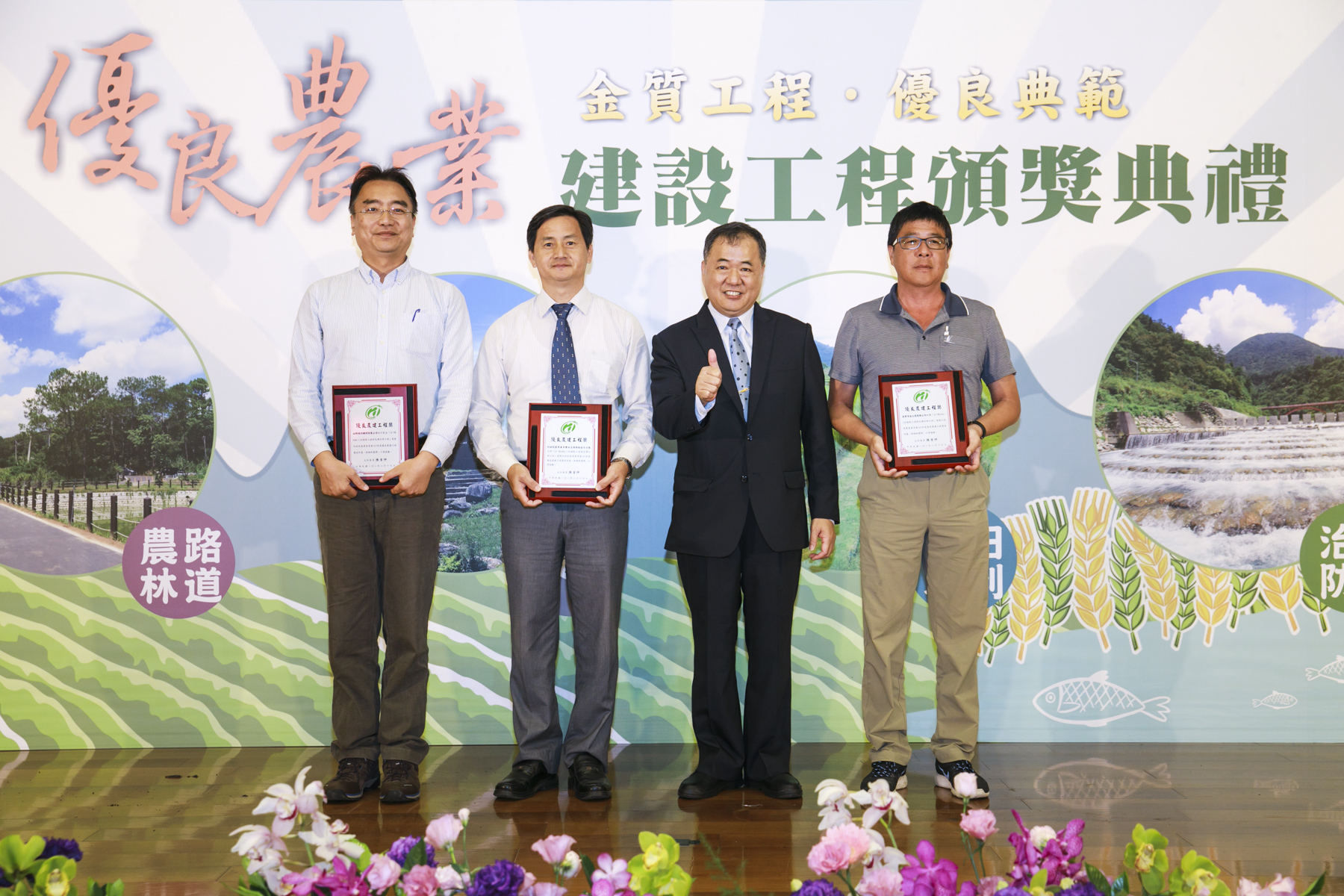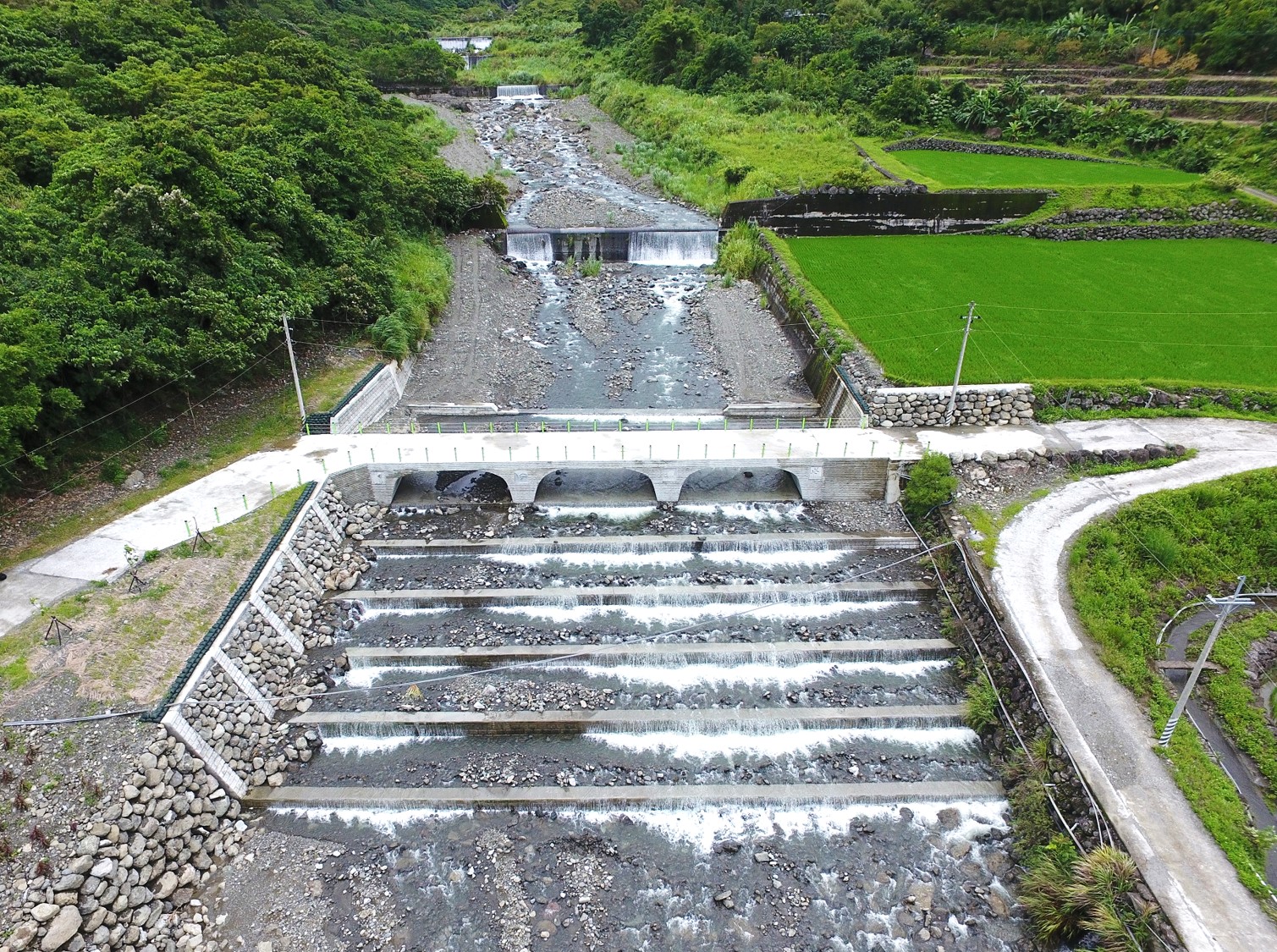 治山防災類-九岸溪南坑加強工程榮獲107年度優良農建評選為「優等工程」。因原既有過水路面通水斷面不足、容易淤砂阻塞且難以清理,每逢豪大雨溪水暴漲嚴重影響農民通行的危險。本工程設計理念為設計三孔大跨徑箱涵解決通水斷面不足,並施作固床工降低河床縱向廊道落差,另採用砌石護岸,可減少混凝土用量,並達到節能減碳目的。其預期效益為保護竹田村居民約100戶、保護產業道路約1000公尺及農田產銷約50公頃。
