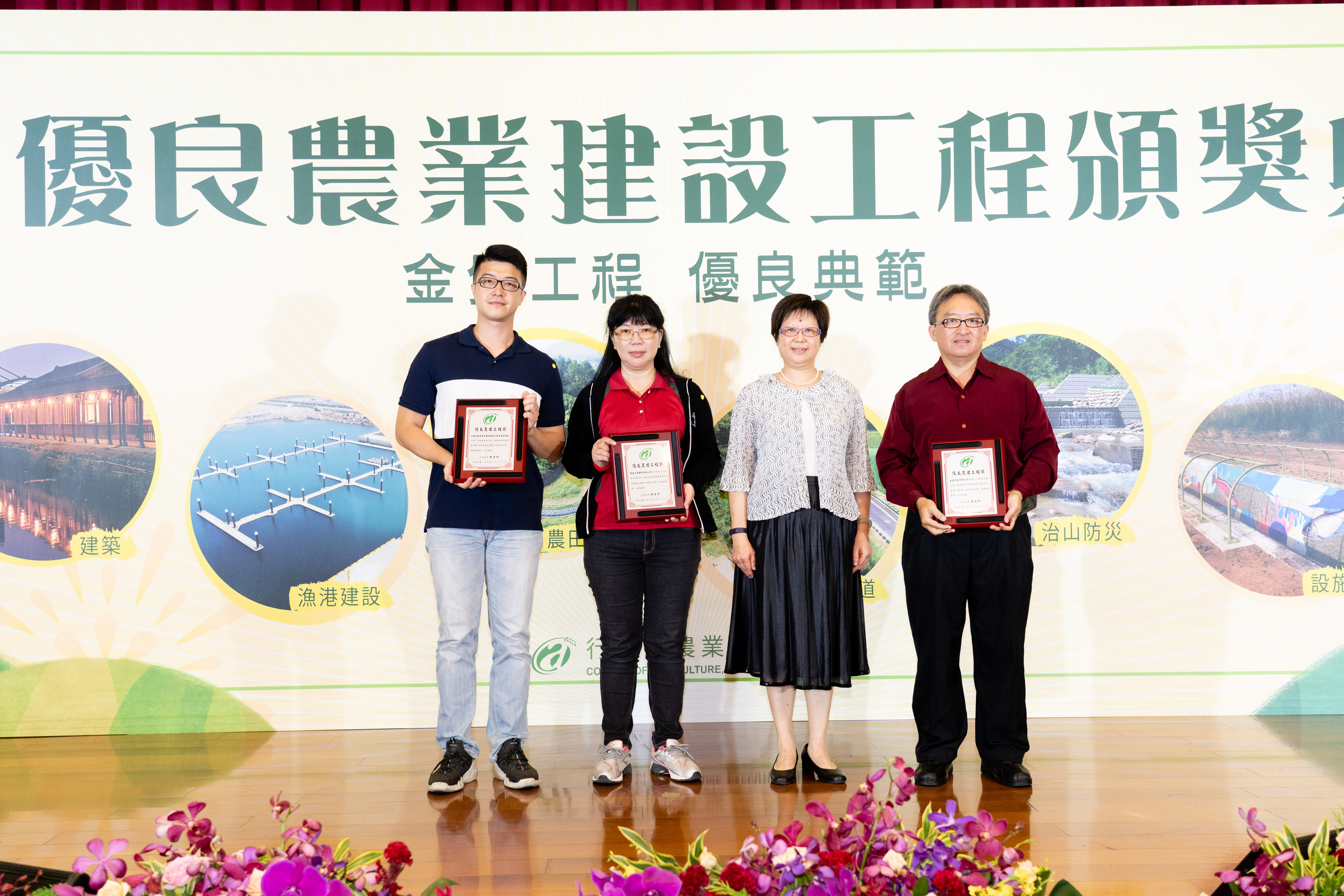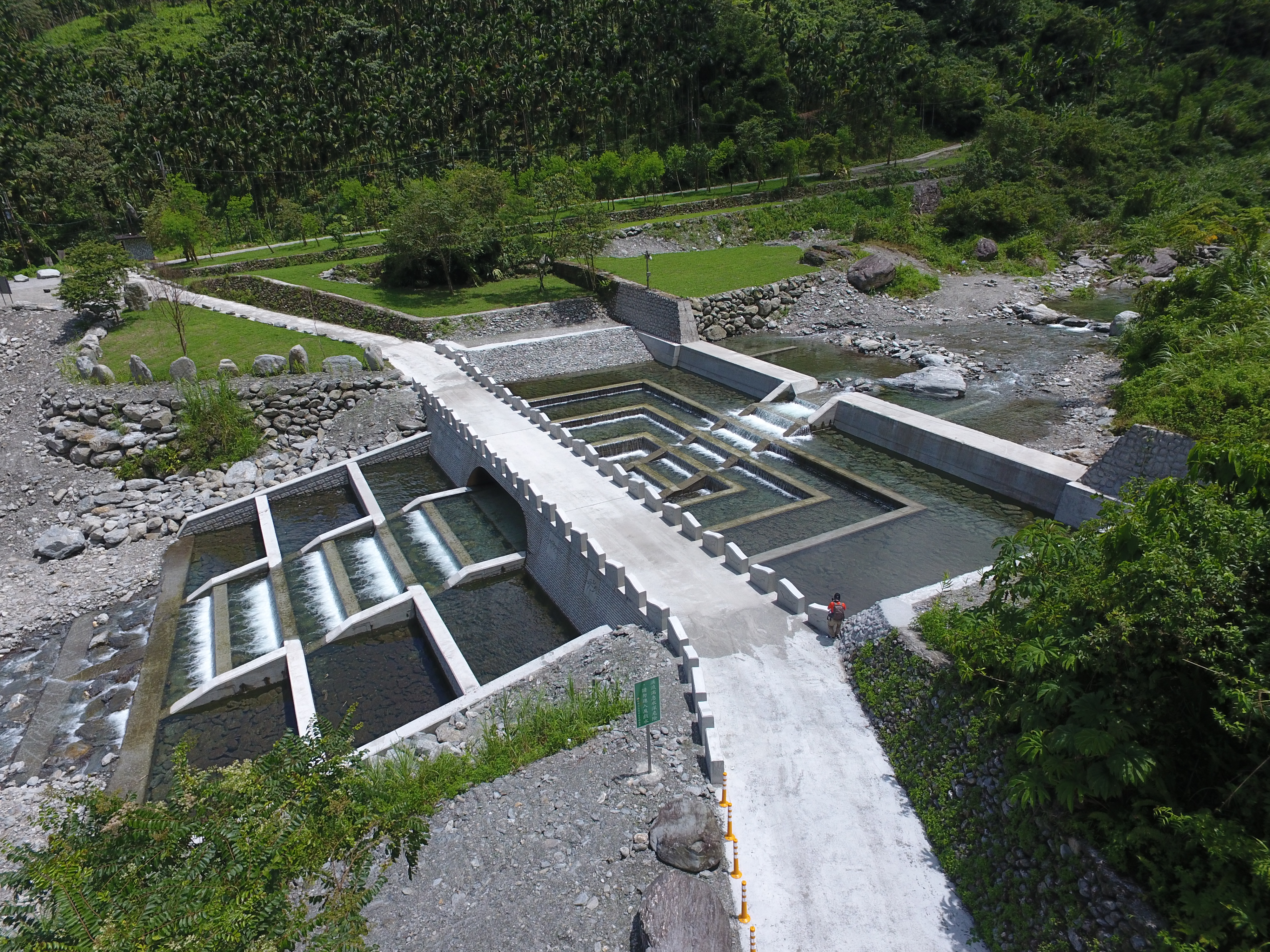治山防災類-「大興溪加強工程」榮獲108年度優良農建評選為「佳作工程」。因舊有過水路面老舊破損通水斷面不足,每逢豪大雨溪水暴漲嚴重影響居民通行的危險或中斷。本工程設計理念為設計單孔大跨徑箱涵及緩坡階梯式跌水工共構,營造出人、車、水及迴游生物交匯安全通行和協共融的環境;階梯式連續式跌水工,減少橫向構造落差避免淘刷,穩定溪床、控制流心、河道緩坡化,提供生物上溯;緩流淺瀨環境,提供水中生物避難與產卵之場域;溪床構造物皆設置緩坡構造,及縱、橫向安全廊道,提供陸域動物(飲水)及水域動物安全通道;設置大面積蓄水空間,營造生態友善環境,有利多樣性動物棲息繁衍外,也可補充地下水及供旱季灌溉之用。