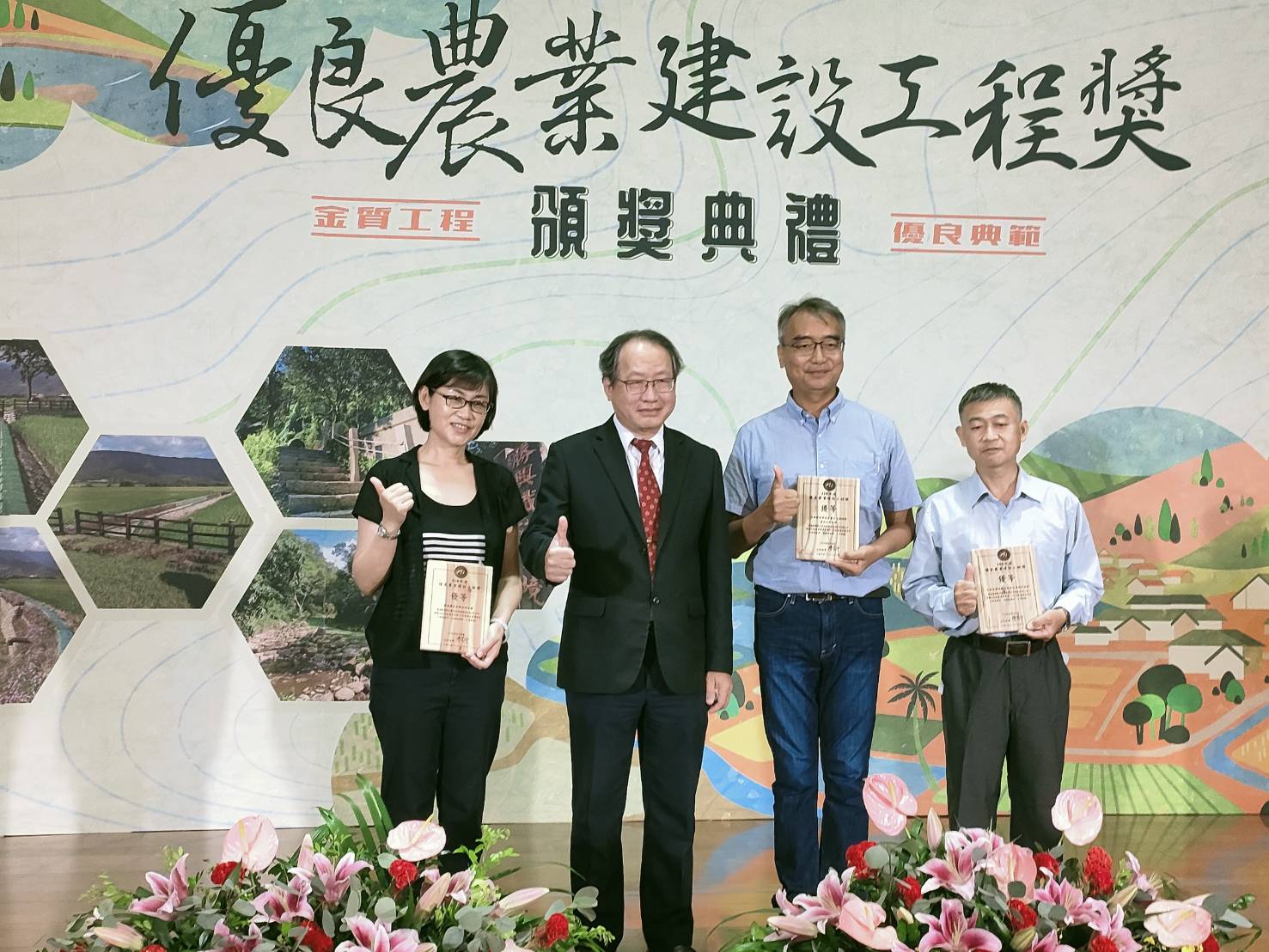 農路(林道)類-西林林道0K~15K改善工程 榮獲110年度優良農建評選為「優等工程」。因林道上下邊坡高低落差大,造成中小型哺乳動物通行障礙的不友善,本工程設計理念為特別考量動物通行需求,並調查現場動物種類,量身定做適合動物專用的斜坡道等多種改善方式(如外掛式攀爬坡道),完工後利用監測相機追蹤動物的使用情形,確實達到生態友善效果,細心的設計及良好的施工品質為通行在林道的使用者有個安全的道路。