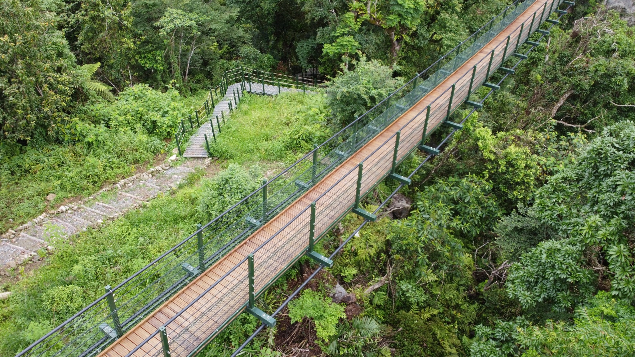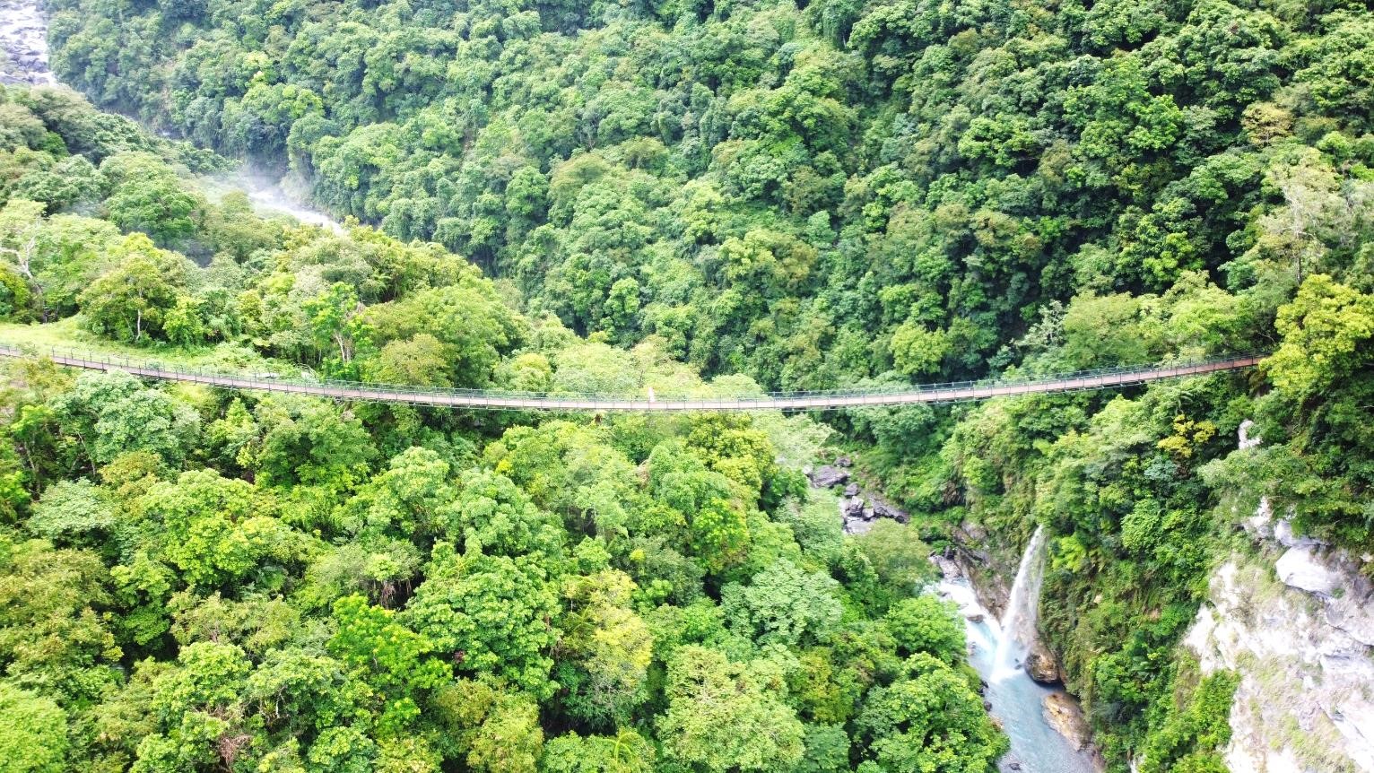 富源國家森林遊樂區 龍吟吊橋嶄新開放歡迎遊客前來造訪 位於富源國家森林遊樂區內的龍吟吊橋為串聯園區內環溪與環山兩條步道之重要設施,於105年颱風豪雨遭落石擊中損毀,106年因地震大規模崩塌步道全面中斷,俟地質穩定後,經林管處爭取經費、現地資源調查及踏勘、地質鑽探評估、生態調查後,於108年進行規劃設計,邀集各領域專家學者共同討論審查,歷經2年整建修復工程後,新龍吟吊橋呈現嶄新風貌重新開放遊客使用。 為提供民眾更安全舒適的育樂場域設施,林管處謹慎評估新龍吟吊橋北岸橋台之選址,以局部改線方式迴避災害潛勢區,並銜接北側觀景平台與南側環溪步道,確保吊橋長久穩定安全性,為了減少設施量體對自然環境之衝擊設計為懸垂式吊橋;而吊橋南岸橋台則利用現地舊有作業道及平台興建。由於富源國家森林遊樂區早期有蝴蝶谷之美名,區內動植物資源豐富,工程施作中林管處嚴格要求不得損傷林木,並局限於既有作業道範圍內施工,排除不必要之挖填行為,降低減少對環境擾動的次數。 龍吟吊橋整修工程榮獲110年度優良農業建設工程評選為「佳作工程」,透過吊橋與步道路網串聯整合,並於吊橋前端連結道以手作步道方式,就地取材以九芎木為踏面,尊重生態生存空間以符合當地的自然調性;橋台對稱之設計提高遊客行走之舒適性使遊客可多次到訪,享受探索著自然環境不同時期的風貌,此外保留已損壞之舊龍吟吊橋提供環境教育之用,讓遊客能了解園區遭受自然災害的歷史過程。 富源國家森林遊樂區擁有大片的樟樹林,富源溪緩緩流過其內,芬多精與負離子交輝組合使遊客能感受大自然的美好,感受森林療癒之效;此外,園區內龍吟瀑布更是必遊之景點,藉由龍吟吊橋整建搭配周邊步道與景觀台,提供遊客能從不同角度來欣賞龍吟瀑布與富源溪的景色,為園區重新活化探索、健行、養生及賞景遊憩空間。未來林管處也會持續與ROT廠商蝴蝶谷實業股份有限公司一同合作努力維護管理並提升園區內各項遊憩設施,提供遊客更加舒適的遊憩體驗。