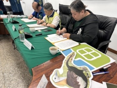 為改善玉里地區水雉面臨的棲地危機,林業保育署花蓮分署盤點合適棲地,於兩年前即與玉里鎮公所討論,合作營造水雉棲地,由玉里鎮公所主動向國有財產署申請撥用三民養殖區內一處閒置養殖池,撥用完成後,雙方進一步討論後續合作模式,於今(1)日由林業保育署花蓮分署黃群策分署長、玉里鎮公所龔文俊鎮長,以及牛犁協會黃健豪組長公私協力,三方簽署「國土生態綠網之三民養殖區水雉棲地營造經營合作備忘錄」。