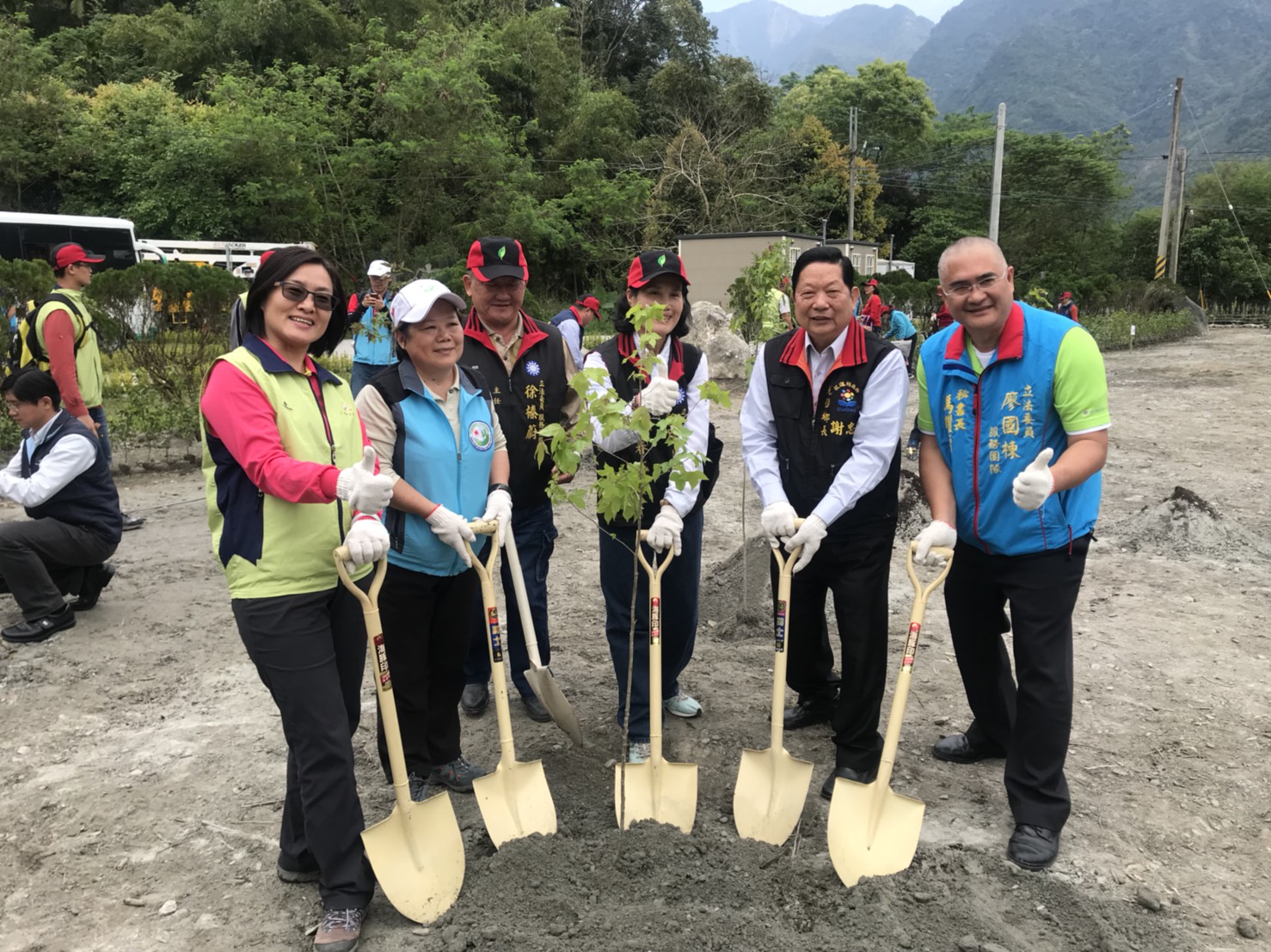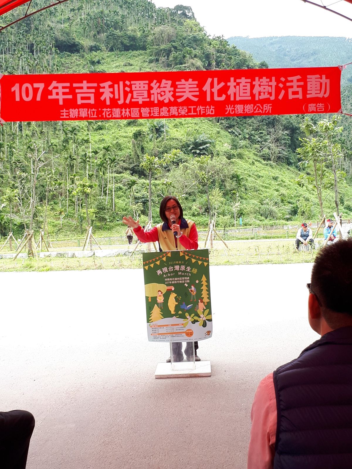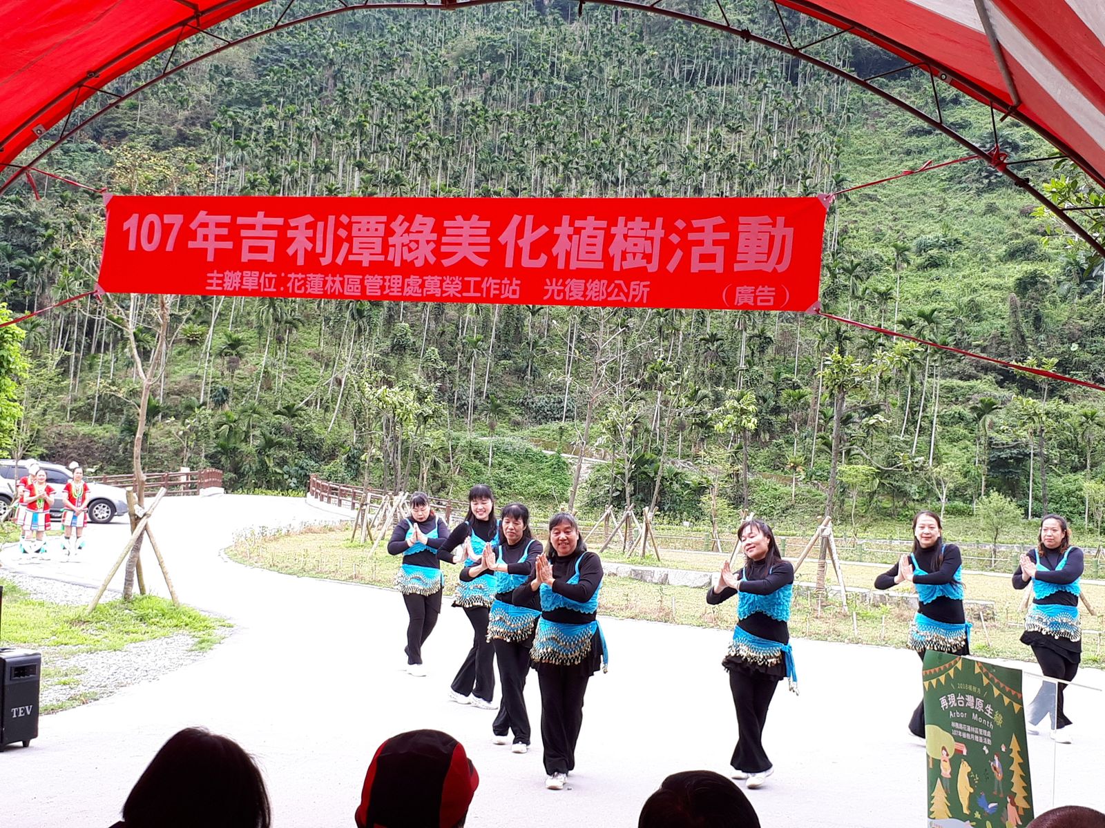 3月14日10時在光復鄉新興人氣景點—吉利潭,花蓮林區管理處與光復鄉公所聯合舉辦植樹綠美化活動,活動由林區管理處處長楊瑞芬主持,參與貴賓踴躍有徐榛蔚立委服務處主任林榮祿、孫春玉、蕭美琴立委服務處主任劉福英、谷辣斯尤達卡立委辦公室主任陳秀蘭、廖國楝立委秘書長馬耀福佑、張峻副議長服務處主任徐振雄、謝忠淵鄉長、水保局花蓮分局長陳淑媛、自強外役監典獄長吳信彥、台糖花東區處經理林样禎及光復地區各村長、高、國中小校長等,現場由貴賓及學生、社區及民眾約300人一起參與。 活動開始由婦聯會光復分會及馬可認協會的舞蹈表演中熱鬧展開,楊處長感謝水保局花蓮分局多年來投入經費改善吉利潭整體景觀,也感謝謝鄉長為光復鄉極力配合推動打造光復鄉「中糖廠、西馬太鞍、南森林園區、東拉索埃、北吉利潭」五顆珍珠景點。活動場地「吉利潭」是馬太鞍溪上游的天然湖泊,也是部落舉辦祈雨祭的地方,日據時代曾為儲木池,風景秀麗。近年來經水土保持局花蓮分局與光復鄉公所共同打造成為一個生態及景觀兼具的休憩景點。鄉長謝忠淵與水保局分局長陳淑媛感謝林管處用心規劃植栽美化,改善吉利潭環境景觀,大家一起成就共好。 每年3月是植樹月,花蓮林管處特別選在最適合種樹的季節,邀請民眾共同來植樹,林木種植於吉利潭二處,配合現地環境及景觀,規劃種植原生、蜜源及景觀植物,包括油桐、台灣欒樹、楓香、青楓、落雨松、含笑花、梔子花、樹蘭等,總計種植1,234株林木,面積約0.46公頃。現場由貴賓帶領學生及民眾親手栽種,讓吉利潭除具生態及友善環境景觀外,更增添四季景觀的色彩變化。林管處特別準備深受民眾喜愛,象徵長壽及富貴的茶花及桂花各300株送給參與活動的民眾,把長壽富貴帶回美化家園,並希望大家常回到吉利潭來看看自己所種下的樹種一起養護,讓馬錫山下的明珠有了四季色彩變化後能更閃亮。