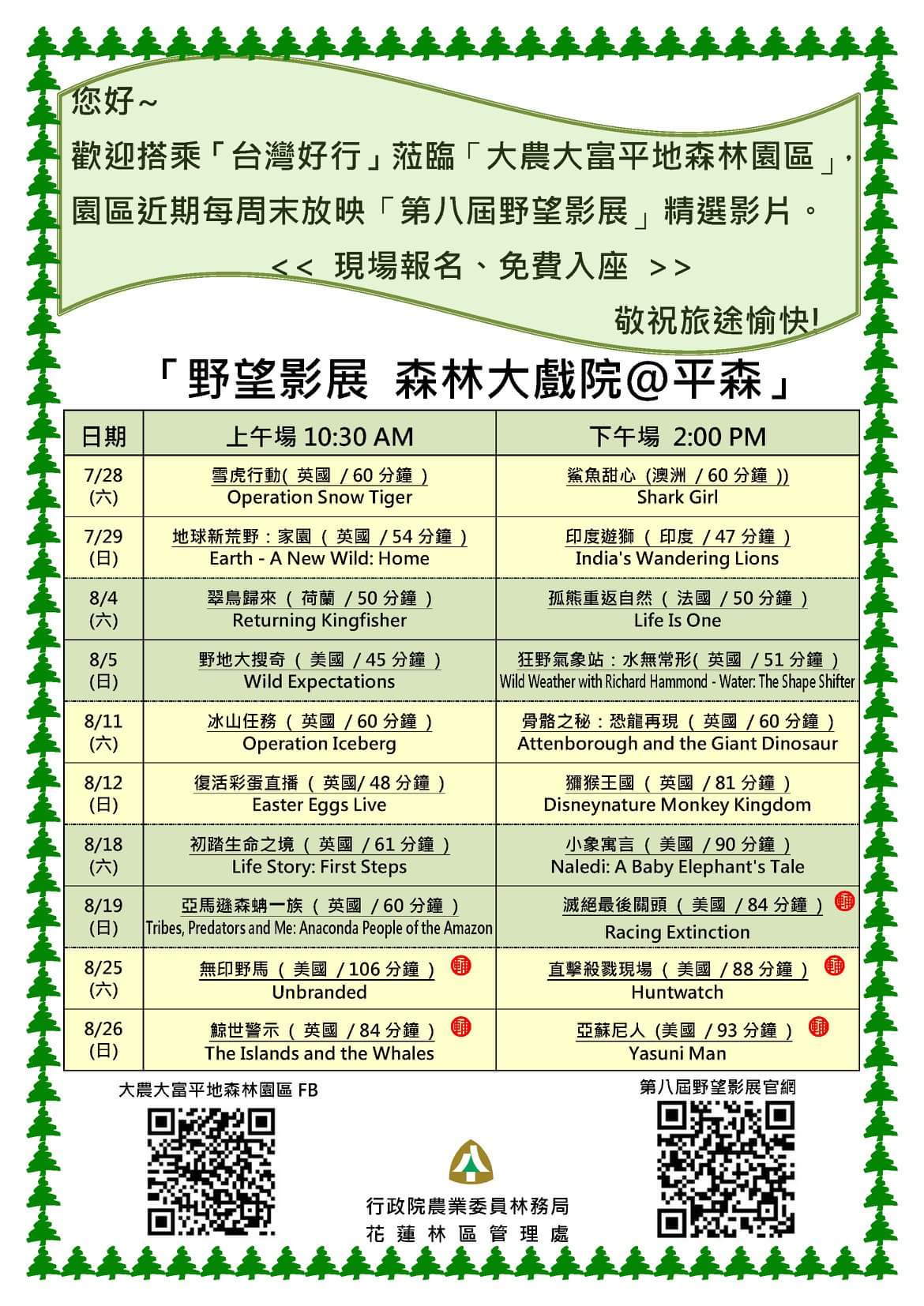 吃貨饕客照過來!大農大富平地森林園區雙週假日市集即將在8月11、12日及8月25、26日(週六、週日)下午14時到17時舉辦,主要以周邊社區為主,除推出文創新品「平森珍貴嬌客-環頸雉圖樣陶土吊飾」,帶上它讓你充滿野趣、獨樹一格,還有太巴塱黑米現場售有植物染布、蝙蝠守護的友福米、黑豆等,小森選書還為你挑了幾本森林繪本、森林迷必讀刊物。目前招募攤位中,以特色餐點、友善農作、手工藝品、林業文化相關產品為主,欲報名的攤位請聯絡0967-050899(林先生),邀您在大自然裡共襄盛舉,一起分享給平森的好朋友,一起共渡好時光。 開辦日則請到太巴塱部落、阿法隆文化藝術團舞蹈及二胡表演,搭配了本月主題活動「飢渴生存美食」,教你如何辨認、採摘野菜,體驗森林裡的田園樂,讓你各種感官都收穫滿滿。 炎炎夏日,恰逢森林大戲院野望影展展期,到大農大富可先至服務中心觀看備受各國觀眾喜愛的國際生態紀錄片, (本月播放冰山任務、骨骼之秘等,詳見FB粉絲專頁),看完肚子餓了到園區和森林市集逛逛,走在林間小徑,涼風徐來,一邊眺望中央山脈,一邊將在地選物食光光,最後再帶份小禮物回家,就是簡單的週末好時光了! 園區占地廣,建議騎乘單車遊玩,搭配市集活動自行車租借現場打卡享9折優惠,大農大富平地森林鐵馬驛站聯絡電話:0912007018,開放時間周二到周日9:00-17:00(每周一公休)。旅遊資訊請洽大農大富平地森林園區遊客中心/電話:03-8700870#9。