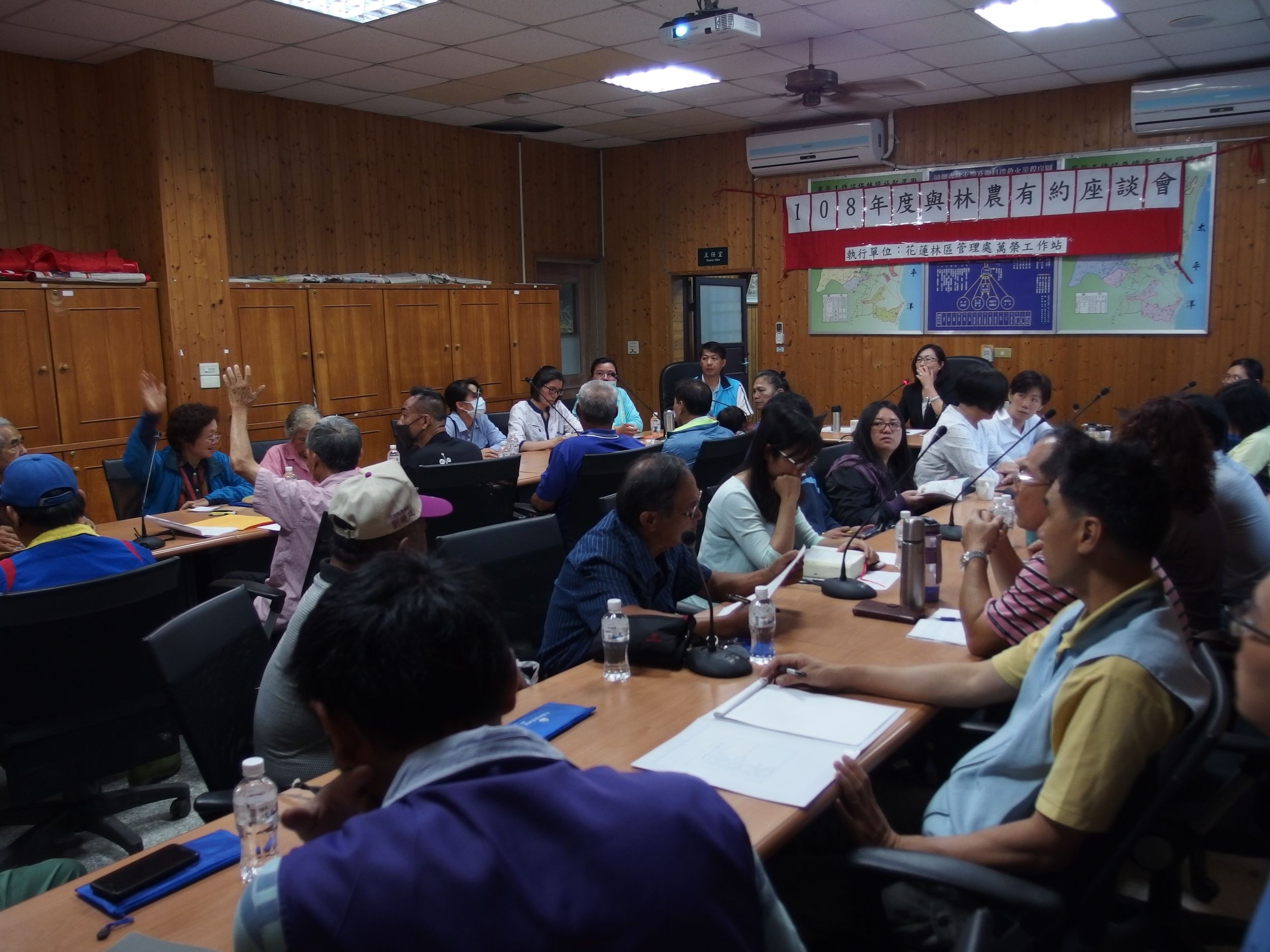 花蓮林區管理處於108年上半年度接連於所屬四個工作站辦理「與林農有約」座談會,昨日(5月27日)在南華工作站完成上半年度第四場座談會,四場次的座談會共計吸引了上百位林農參與、關心林業與造林相關議題,會場發言踴躍。 處長楊瑞芬表示,租地造林相關規定因時空背景不同而屢有修正,林務局對於林農的合約屨行亦由過往的管理,轉變為輔導、合作方式推廣林業多元經營,其中又以剛奉農委會核定的林下經濟林農最有感,在萬榮工作站場次中,就有年輕的張姓林農表示其特地從臺北回花蓮想參與林下經濟,而且已經參加過花蓮處舉辦的教育訓練、參訪及觀摩等課程,在玉里工作站的場次,也有吳姓林農已著手進行籌組林業合作社,並號召其他林農一起。 花蓮處表示,四場次會議中,去年來今年也來的林農高達九成以上,顯見林農對於參加會議是有所期待的。林農的意見及關心的問題可說是全方位,除了自身的個案外,另可歸類為幾個方向:獎勵造林期滿後續經營管理、林木伐採、輔導林下經濟、禁伐補償訴求、增劃編原住民保留地進度等議題;其中為能即時回應林農詢問增劃編原住民保留地進度問題,林管處並邀請鄉、鎮公所承辦人與會協助說明,在林下經濟的輔導部分,亦將研議整合一個平台,讓林農能全面了解各項申請資訊,在平台中除林管處外也同時能與其他相關單位同步諮詢。 楊處長針對租地造林人在造林工作上面臨的困難、需求與意見,逐一回覆,在南華工作站的場次,去年曾遠道參加的莊姓林農今年也持續與會,並對林管處的積極作為表示肯定,更讚許林務局有進步、會推動輔導林下經濟的做法,花蓮當地王姓林農更是對於工作站承辦人親切、積極的服務態度,讚譽有佳。 林管處除感謝林農熱情參與,並提供了很多寶貴的意見,讓林管處瞭解林農的想法與對政策或管理上的疑問,面對這些問題,有些屬於個案的部分,將由各工作站列管、輔導協助,屬於政策面的部分,將會反映到林務局作為修訂相關規定的參考,並重新檢視會議中林農提及未獲承租之土地是否符合濫墾地清理申請要件,屬其他機關權責事務,也會將意見轉權責機關參酌;座談會將持續辦理,下半年度繼續由工作站主任依各站轄區分區走動式召開,歡迎林農踴躍參加。