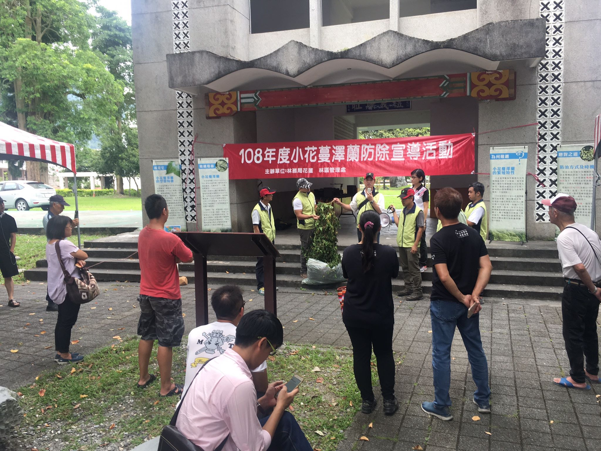 為鼓勵民眾一起加入剷除「綠癌」-小花蔓澤蘭的行列,林務局花蓮林區管理處今年分別於北、中、南區擴大辦理多場宣導活動,最後一場昨(21)日在玉里鎮舊玉里國小登場,玉里工作站特別與玉里鎮週會市集合作,吸引了超過100位民眾熱情參與。活動當天民眾以小花蔓澤蘭藤蔓兌換點劵,現場共收到超過50公斤小花蔓澤蘭,落實「自家小花自己除」的理念。 今年度小花蔓澤蘭防除宣導系列活動以結合各地特色市集方式,宣導民眾認識及如何防治小花蔓澤蘭。活動當天每10公斤小花蔓澤蘭殘株可在市集兌換價「小花代幣」,並在現場消費當地生產的等值農特產品,拔除毒草之餘同時促進在地消費。活動當天雖天公不作美,下起了一場大雨,不過,仍澆不息大家共同愛護家園、剷除外來入侵種的意志,吸引了超過100位玉里鎮民參加,累計收到超過50公斤的小花蔓澤蘭,成果相當豐碩。 花蓮林管處副處長王怡靖呼籲,要讓列為全世界百大入侵種,有綠癌之稱的小花蔓澤蘭,不破害臺灣的生態,仍需由政府與全民ㄧ起來防治移除,才會有成效。今年三場系列活動共砍除了超過800公斤的綠癌,參加人數將近2,200人,相當踴躍,顯見民眾對於防除小花蔓澤蘭已有充分的共識;林務局以每公斤5元補助各縣政府收購,花縣政府縣長徐榛蔚更主動加碼至每公斤8元,全國僅有,以鼓勵花蓮縣民不分季節、不分地域,隨時隨手都能砍除小花蔓澤蘭,對生態環境做出具體貢獻外又能賺外快,請民眾把握最佳防除時機及收購的期限,詳情可洽詢鄉鎮公所。