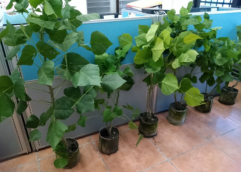 每年春天刺桐樹長出新葉時,噶瑪蘭族人會開始整修漁船、漁具,等待4至9月間莿桐花開即可出海捕捉飛魚。近年因新社部落的原生刺桐數量日漸減少,讓族人頗為憂心,花蓮林區管理處繼去年協助部落復育祭祀用民族植物-毛鞘蘆竹後,7月10日再贈送6株原生種刺桐苗木,由部落會議主席潘禎祥代表部落收下,將彼此合作關係再往前邁進一步。 林管處長期在豐濱鄉新社村辦理「森-川-里-海」生態農業倡議平台,關心部落發展及需求,去 (108) 年 8月在新社復興部落召開工作小組會議時,新社社區發展協會理事長宮莉筠表示,原本在部落田埂旁、農路邊常見的原生種刺桐已日漸減少,希望有專業人士可協助復育。林管處會後立即就地採集剌桐母樹枝條,進行扞插復育,在同仁歷經一年的細心撫育後,順利將成功培苗的原生刺桐苗木送回新社部落。 林管處表示,該批苗木來源是新社社區的2株母樹,由同仁從母樹採集枝條,再帶回中原苗圃以扞插方式培養。首先將種苗種植於4吋軟膠盆,接著為了讓苗木生長更加健壯、根系發展旺盛,在今年初更換為6吋美植袋繼續撫育。一年時間共培育出6株原生種刺桐,苗高約1公尺,地徑約1-2公分,枝葉茂盛、生長勢佳,已適合出栽,在7月10日送回新社社區。 部落會議主席潘禎祥代表部落感謝林管處的協助,將具部落代表性的原生種刺桐培育成功,也會將苗木分送當地族人認養種植,並表示期待除了海梯田外,也能進行原有野生種植物復育,維護在地生物多樣性,為落實里山精神再添1樁美事。