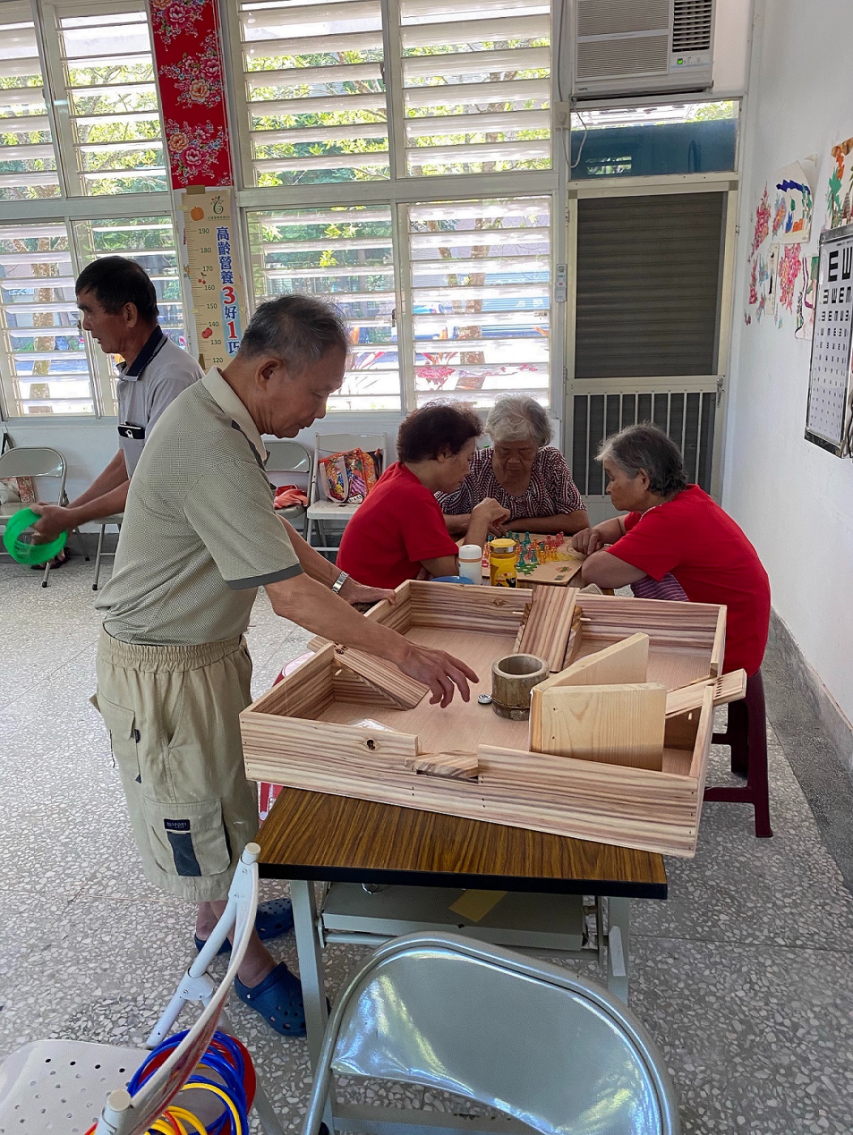 花蓮林區管理處今(109)年7月起與花蓮縣牛犁社區交流協會合作,將「108年百萬小學堂-木工技能培訓班」學員用國產材製做的木育品,提供給本縣境內6個社區高齡長者學習課程及推廣活動使用,讓長者親自體驗、手腦並用,預防及延緩高齡者失智。 「108年百萬小學堂-木工技能培訓班」學員作品,均取材人工林疏伐台灣杉所製成,兼具質感及美感,充分發揮國產材優點,成品有套圈圈、溝通方塊、四人木片彈射裝置及編織板等提供長者使用,格外有意義。藉由巡迴教學課程,幫助長照據點高齢長者活化身心,預防失能失智,同時讓民眾認識國產材,體驗國產材多元運用。目前木育品已巡迴至南平社區及博愛教會據點,阿公阿嬤們使用踴躍、邊玩邊學習,達到極佳育樂效果。接下來還有8個場次、巡迴服務4個據點長者,有興趣的單位也可向林管處洽詢。 林管處近年積極推動愛用國產材政策,連續三年辦理百萬小學堂木工相關課程,利用漂流木、風倒木、疏伐木為材料,創作出美麗又實用作品,此外,為提升學員就業競爭力,今年3月下旬輔導學員全數通過丙級木工證照考試,將來能順利投入木工產業或從事木工教育推展。學員課堂作品將持續用於公益,幫助部落社區、樂齡中心高齡長者及應用在學校課程中。