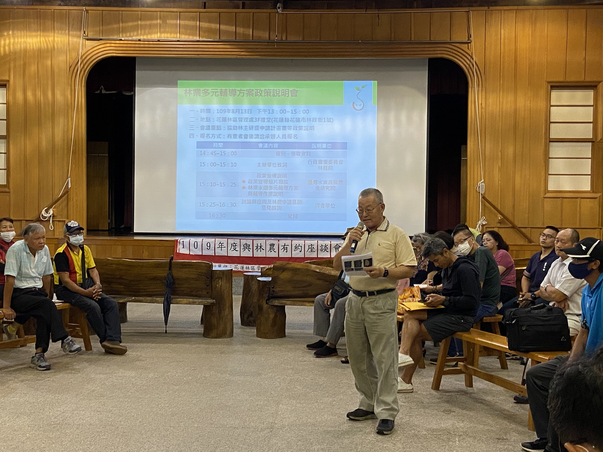 花蓮林區管理處今年上半年度「與林農有約」座談會於所屬4個工作站陸續召開,最後一場11日在南華工作站辦理,四場座談會共計有逾百位林農參與,會中傾聽林農心聲,解決林農面臨的困難,共同來關心林業與造林相關議題,發言十分踴躍。 連三年從高雄來的莊姓林農除肯定林管處召開座談會協助解決林農問題,並建議林管處成立一個即時訊息溝通平台,讓資訊更透明,也方便林農遭遇問題時可隨時向管處反映。林管處南華工作站也立即從善如流,成立LINE林農交流群組,在群組內即時提供最新政策及資訊供林農參考。 林管處楊瑞芬處長對於林農提出的意見,包括個案問題外,包括獎勵造林期滿後續經營管理、輔導林下經濟、禁伐補償訴求、產業道路損壞整修、增劃編原住民保留地進度等議題,均一一答覆,非屬林管處權責的部分,會主動協助林農邀集鄉公所等單位辦理會勘,解決現場問題;涉及政策面議題,則會適時向林務局反映。會中林農對於林業合作社及林下經濟辦理有興趣,希望林管處協助結合其相鄰接的租地承租人共同規劃。楊處長並邀約林農參加8月13日下午2時45分在管處辦理的林業永續多元輔導方案說明會,屆時將有更全面的政策說明。 林管處非常感謝林農熱情參與並提供眾多寶貴意見,座談會下半年度將持續辦理,由工作站主任依各站轄區分區走動式召開,詳細資訊將在臉書粉絲專頁公告。