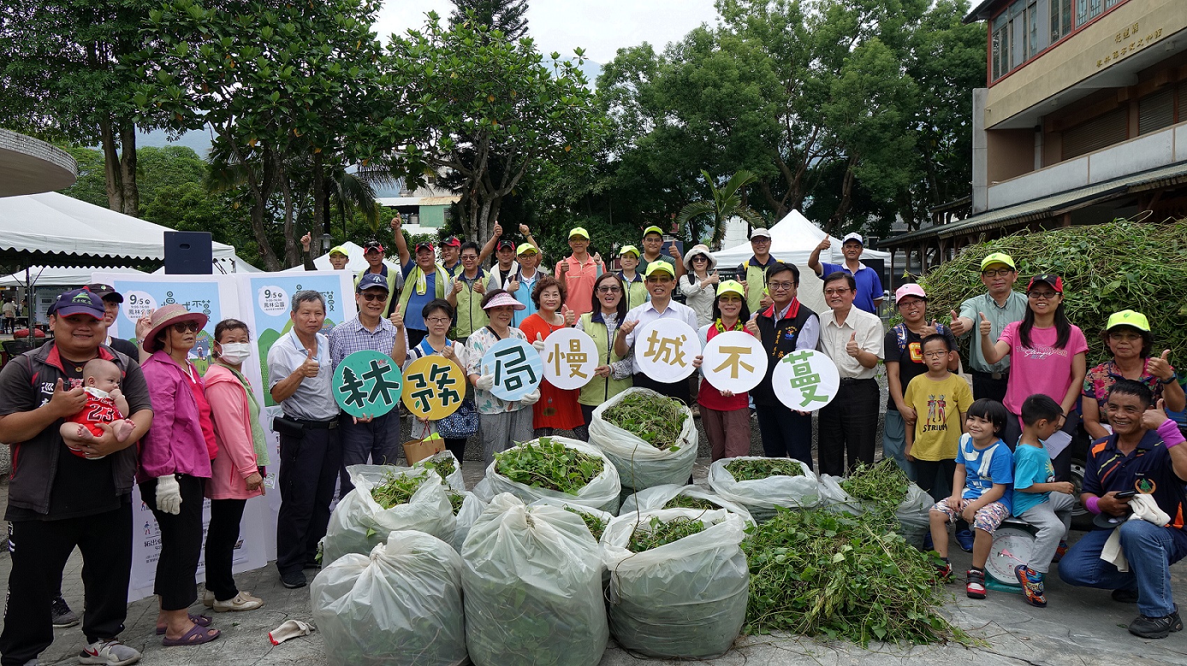 為了根除小花蔓澤蘭對台灣原生植物的危害,花蓮林區管理處今(5)日在鳳林鎮鳳林公園辦理「慢城不蔓」市集,將除蔓宣導結合在地特色市集,與在地特色店合作,展示小花蔓澤蘭殘株的多元利用外,並舉辦外來入侵種植物移除作業平台會議,擴大公私部門協力合作機制。活動吸引逾600人參加,成功收購2,130多公斤小花蔓澤蘭,除蔓冠軍則由鳳林鎮鄭先生以51公斤奪下,成為今日的除蔓達人。 農委會將每年8月15日至9月15日定為小花蔓澤蘭防治月,9月第一個周六則為全國防治日。今年9月5日防治日當天,全國8個林管處、11場除蔓活動同步登場,串聯全台宣示除蔓決心。林務局副局長廖一光致詞時表示,政府在民國90年左右開始開始啟動除蔓作業,據統計當年全國面積約51,000多公頃,經過20年努力除蔓,截至去年已減少至4,700多公頃,「除蔓務盡」,相信全民齊心、持之以恆的努力,終會讓小花蔓澤蘭對台灣原生植物的威脅徹底移除。花蓮縣政府農業處長吳昆儒則提到,未來會加強與林管處的合作,以空拍找出小花蔓澤蘭的分布熱點,充分掌握其生長分布可加速移除,也將致力殘株再利用的開發與合作。 林管處長楊瑞芬指出,林務局補助小花蔓澤蘭的收購費為1公斤5元,花蓮縣政府加碼補助3元,總計1公斤收購價高達8元,為全台之最;其次,今年全國除蔓目標為600公頃、270公噸,花蓮就佔30公頃、200公噸,顯見花蓮在除蔓上具重大成效,歡迎民眾一同加入除蔓行列,維護生態又能斜槓賺外快,一舉二得! 活動由林管處同仁帶來輕鬆有趣的除蔓行動劇與除蔓舞揭開序幕,讓民眾快速了解小花蔓澤蘭對生態的威脅,並學習如何移除才能「斬草除根」。現場設有闖關攤位,推廣林務局「拔草吧」通報平台、國產材林產品追溯系統、保林及政風業務等,完成闖關可兌換宣導品,還可體驗小花蔓澤蘭植物染小方巾製作、書籤拓印等活動,活動多元有趣。林管處還安排民眾乘坐接駁車前往讚炭工房,由專人導覽小花蔓澤蘭防蚊液製作過程,除蔓換代幣逛特色市集之餘,還能認識小花蔓澤蘭多元產品開發利用,活動豐富多樣。 林管處表示,小花蔓澤蘭防治月期間、10月開花前是最佳移除時節,民眾可將移除的殘株送至本縣10個鄉公所收購,或者送至林管處4個工作站,相關訊息可洽花蓮縣政府或花蓮林管處官網。