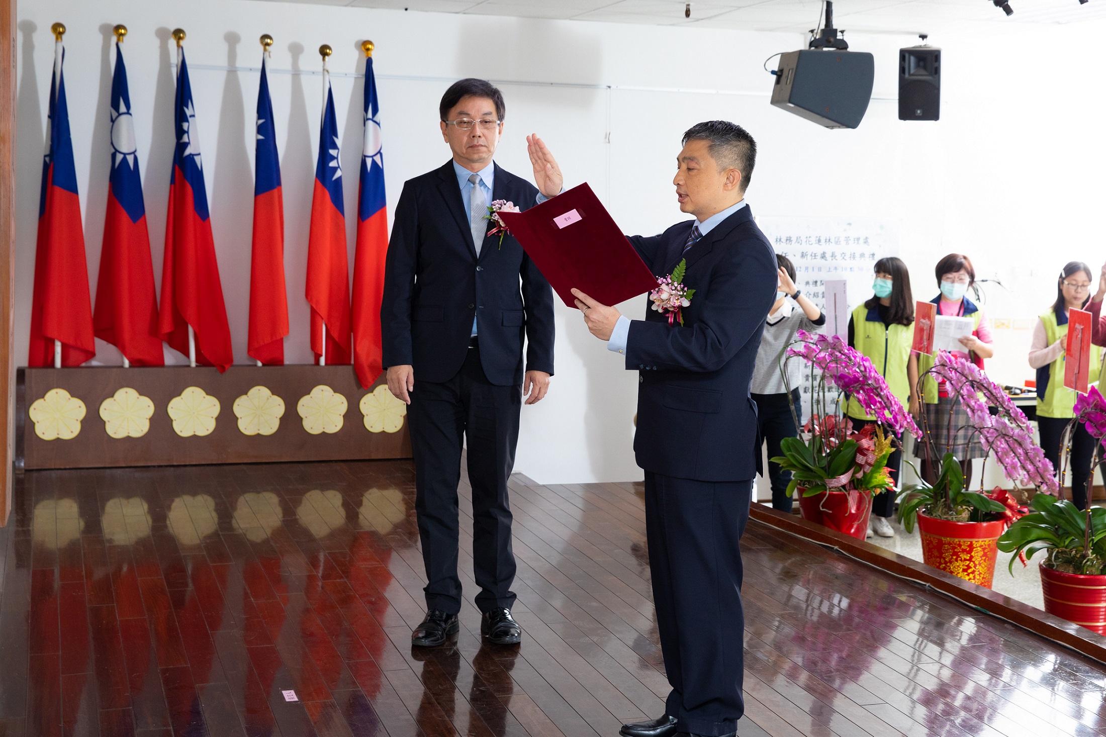 林務局花蓮林區管理處卸、新任處長交接典禮,於12月1日上午10時30分假該處3樓禮堂舉行,由林務局局長林華慶監交,花蓮地區中央部會長官、縣市首長、地方代表等近60位貴賓及花蓮林管處同仁到場觀禮,場面溫馨隆重。 局長林華慶首先特別感謝卸任楊處長過去3年6個月在花蓮處的辛勞付出,促進在地民眾、社團跟政府一起經營保安林、推動原住民夥伴關係等任務均到位,另外成立東台灣第一個林業合作社-有限責任水璉林業運銷合作社推廣林下經濟,實行花蓮國土綠網計畫建構人與自然環境和諧共存的綠網世代工程,深信新任黃處長同樣會以卓越的領導力,繼續帶領花蓮處向前發展。 楊處長表示感謝花蓮縣政府、東部聯合服務中心、NGO、社區、部落等各公私部門的長官、委員及夥伴們,有大家一起協力支持、指導,讓花蓮處推動業務能更圓滿,更深化、精進,現在她階段性的任務已經達成,懇請各界能再繼續支持新任黃處長及花蓮處,與花蓮共創美好。 新任處長黃群策表示,接下花蓮處重任,期許以創新思維及觀念,凝聚同仁向心力、團隊精神,與地方機關、社區部落加強合作,對於構築國土綠網、林下經濟、生態廊道等多項計畫,定會盡全力執行。