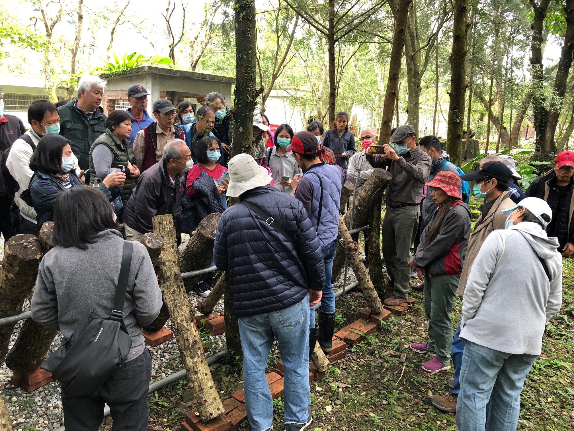 為推廣林下經濟,花蓮林區管理處12月17-18日在萬榮工作站舉辦段木香菇培植課程,參加者包括苗栗、新竹、礁溪、蘇澳民眾,在地西林社區、富源社區、環頸雉發展協會、林田山社區發展協會,萬榮鄉部落事務組長也率員共襄盛舉,還有自強外役監獄同仁來取經,2天的課程總共吸引近100人次觀摩學習及體驗。 每年12月是段木香菇栽植季節,特地開班授課,讓想加入菇農行列的民眾有機會學習植菌技術。課程內容詳細解說植菌的每個步驟,再由民眾親自操做鑽孔機、植菌棒植菌、氣動機植菌、堆置段木養菌,並導覽解說萬榮工作站的菇場,看到段木上一朵朵的香菇,大家都想躍躍欲試。 林管處長黃群策表示,段木香菇栽植是林務局推廣林下經濟的項目之一,目的是輔導林農能利用租地內林木栽植香菇或出售段木,增加收益,本處段木香菇栽植技術成熟,歡迎有興趣民眾洽詢。