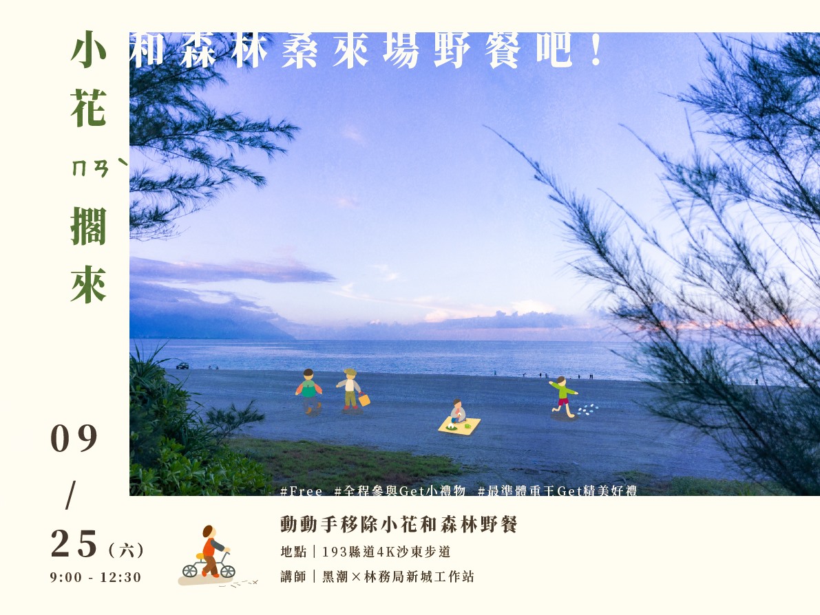 繼今年春天植樹月,花蓮林區管理處與黑潮海洋文教基金會邀請大眾共同在2618保安林種下一棵希望種子後,協力於9月25日在193縣道4K 沙東步道辦理「小花ㄇㄢˋ搁來,和森林桑來場野餐吧」活動,再度邀請民眾合力移除外來種小花蔓澤蘭及動手淨灘,齊心守護保安林、維護生態多樣性、更留住花蓮人心中美好的自然風景,快來報名! 林管處表示,小花蔓澤蘭原產中南美洲,屬「世界百大入侵物種」,且因生長快速、不定根可重新長出新植株的特性,常造成林木遭攀附、掩蓋、失去光合作用功能而枯死。每年11月至隔年2月是小花蔓澤蘭的花期,現在正值移除小花蔓澤蘭最佳季節,號召民眾一起參與防治小花蔓澤蘭的行列。活動另一個高潮是結合公眾力量淨灘,藉由實際動手,共同維護保安林的環境清潔,讓保安林成為社區居民結合旅人駐足的園地。 移除小花蔓澤蘭及淨灘活動後,可依偎在舒適的2618森林桑旁,來場開心的野餐,享受海天一色的湛藍與森林綠毯,讓清風拂面、吹過髮梢,細細聆聽海浪拍岸的節奏、枝葉隨風搖蕩的音符,享受歲月靜好與閱聽山林的純粹。全程參與者將獲得一份小禮物,數量有限,千萬別錯過!詳細活動內容請參「有海的森林就有歌」及林管處的臉書粉絲頁,報名網址:https://reurl.cc/ZGY123。