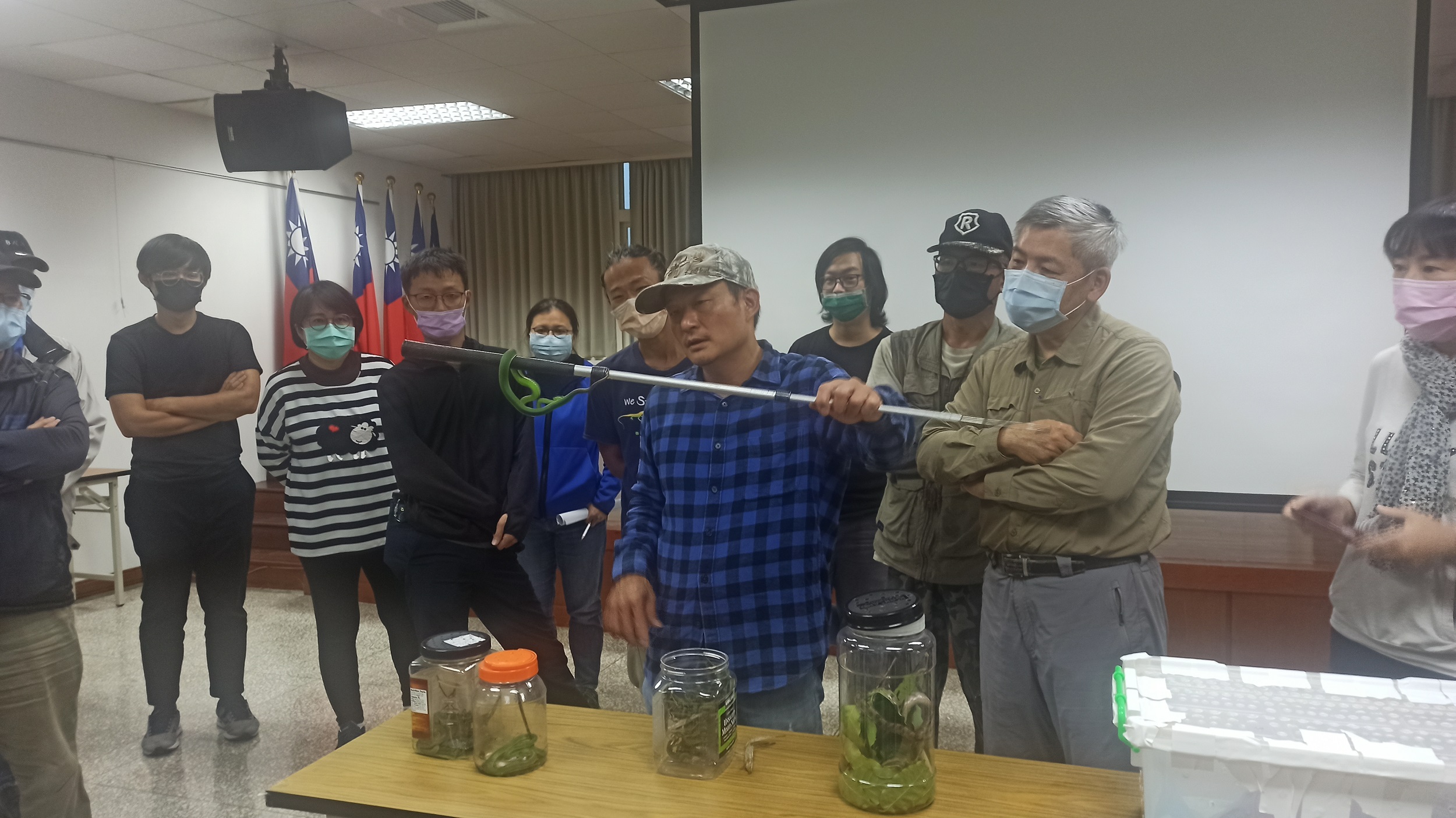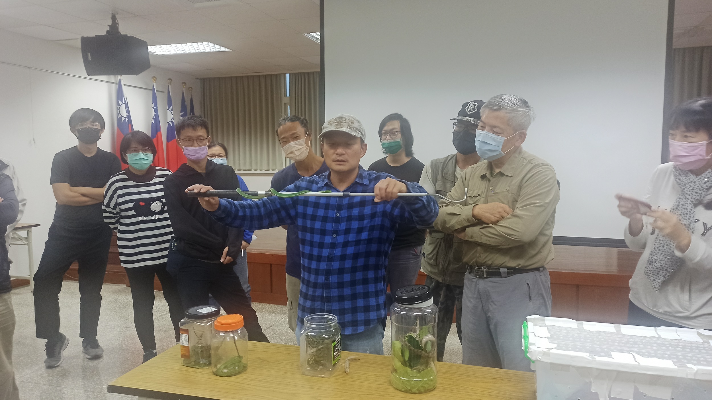 花蓮林區管理處今(29)日辦理「外來入侵種綠鬣蜥移除作業及蛇類保育教育訓練」,與花蓮縣政府、監測志工及綠鬣蜥移除團隊,透過一整天完整扎實的課程,樹立正確保育觀念,精進森林護管員等的專業技能。 課程內容由台東縣自然與人文學會汪仁傑、呂縉宇二位講師,從外來入侵種對原生種造成的危害,到綠鬣蜥生物特性、生理習性及移除工具、移除方式等內容做說明,讓學員進一步了解綠鬣蜥移除的必要性。野外經驗豐富的專家林青峰則分享蛇類生態及保育,以實作課程讓學員瞭解在野外遇到蛇類時該如何分辨、了解其生態習性及驅趕技巧。盼學員們能以良好、正確觀念面對大自然生物,延續生態保育的價值。 林管處表示,綠鬣蜥原產於中南美洲,最早是因寵物市場需求引進,後被棄置野外而或脫逃形成族群。近期綠鬣蜥嚴重危害西南部地區,林務局近來發布「外來入侵種綠鬣蜥移除指引」,做為移除綠鬣蜥的參考依據,確保無不當捕捉或虐待動物之疑慮。森林護管員及志工在山林活動遇到各式各樣的蛇類機會頗多,如何在顧及自身安全前提下與野生動植物和平共處是重要的課題。