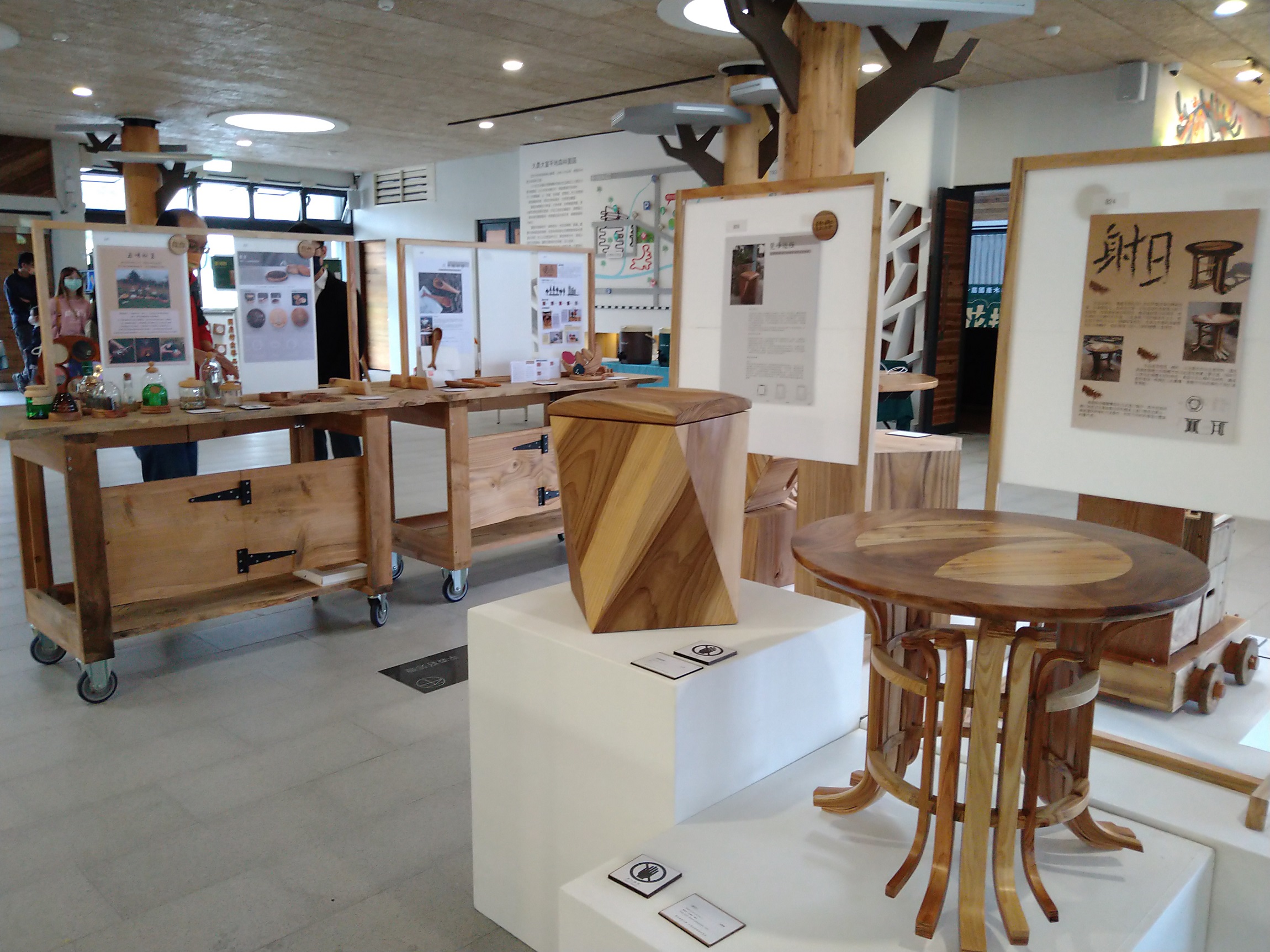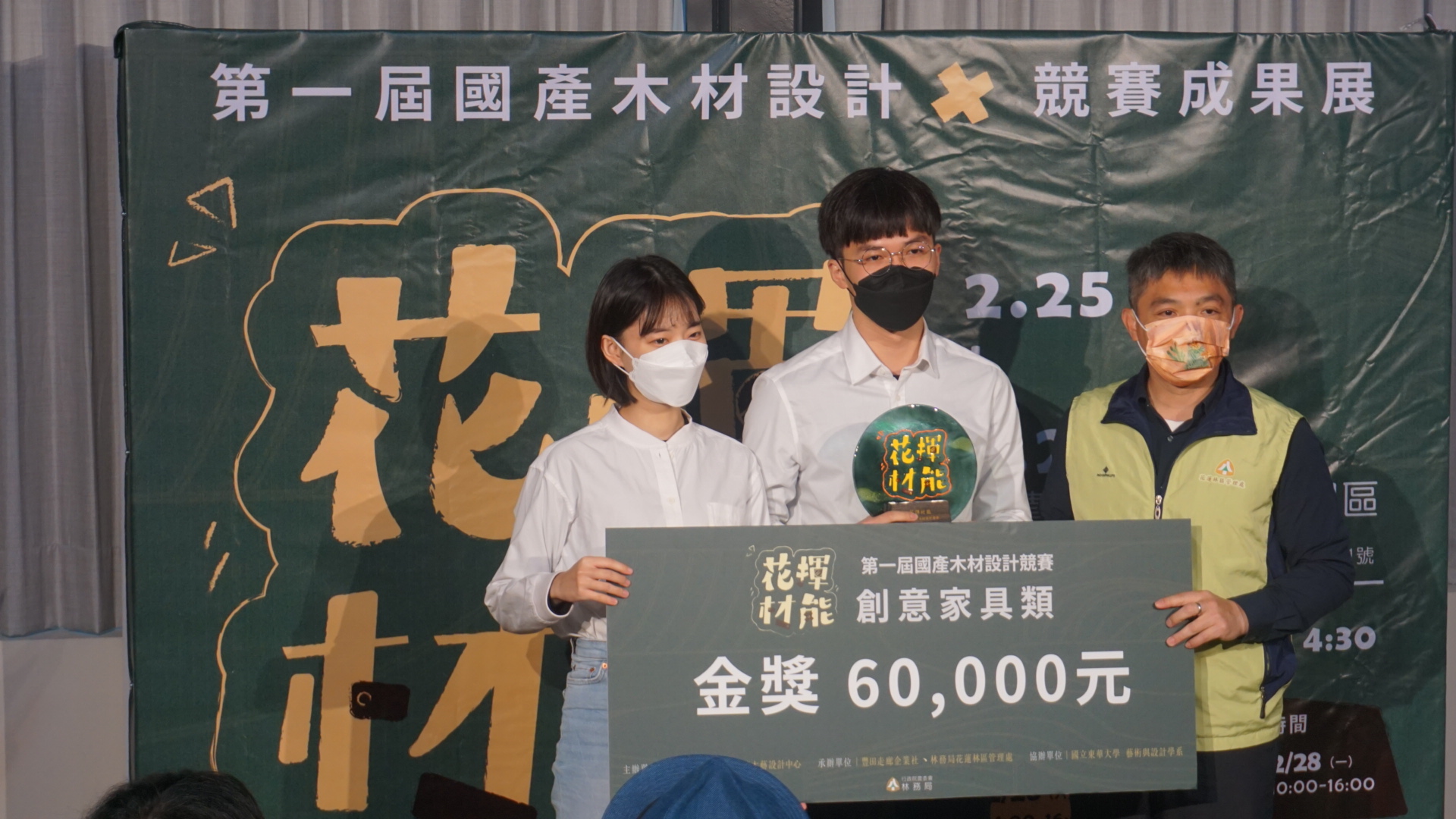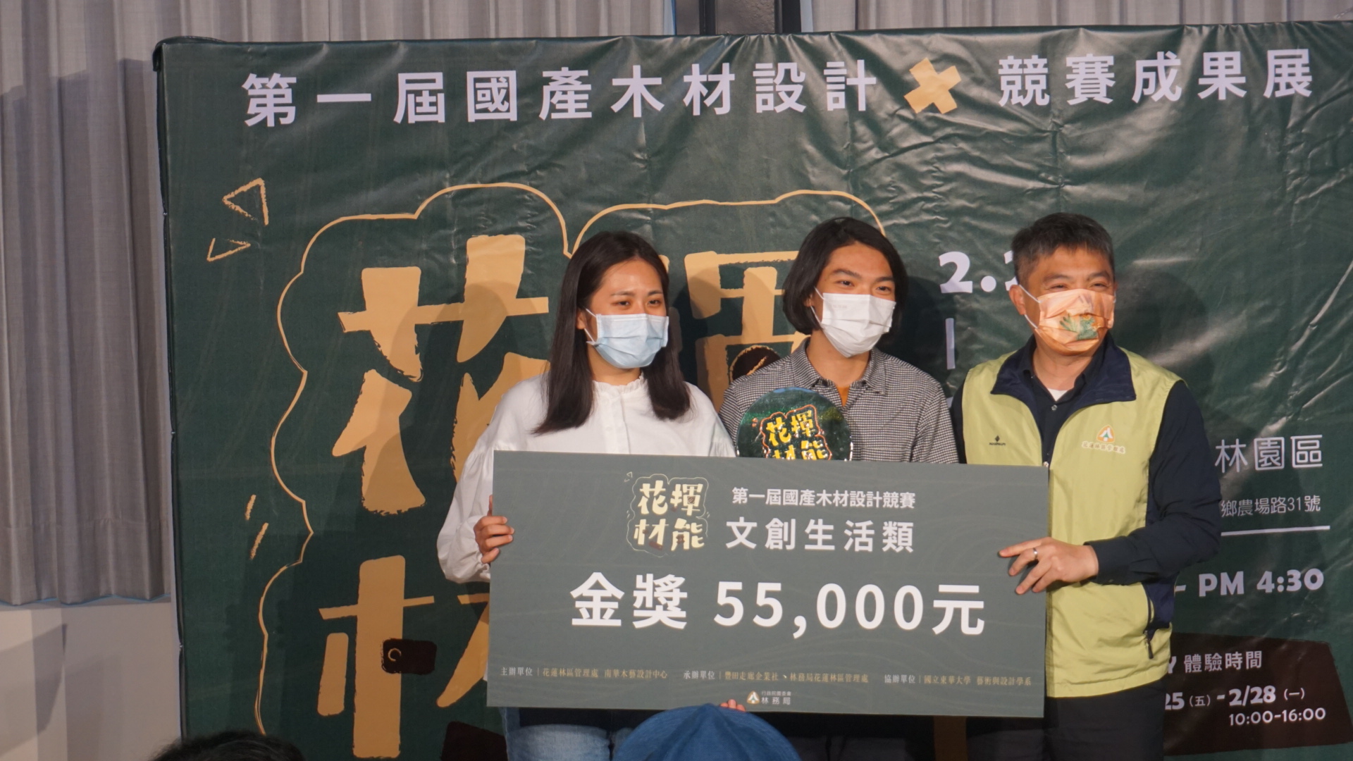 花蓮林區管理處今(26)日於大農大富平地森林遊樂區遊客中心辦理「花揮材能--國產木材設計競賽」決選及頒獎,參與創作競賽者全為大專院校森林及設計相關學系學生,競爭激烈,共有24間學校,92件作品,決選獲獎作品共29組,充滿巧思創意,專業且實用。最後「文創生活類」金獎由清華大學江登豐及屏東科技大學劉璇的作品「鋸樂部」獲得,獎金伍萬伍仟元,「創意家具類」金獎獲獎者為東海大學張景程、李冠緹的作品「再•見林田山」,獎金陸萬元。 林管處長黃群策表示,林務局近年積極推動愛用國產材政策,這是花蓮首次「國產木材設計競賽」展覽,希望愛用國產材政策,向下扎根。使用國產材不僅可減少進口木材的碳足跡,也可促進臺灣林業發展,希望藉此增進台灣國產材的多樣性利用,提高木材附加價值,推動多元文化創意產業發展。 為提升國產材價值,林管處110年6月開始受理第一屆「花揮材能-國產木材設計競賽」報名,創作主題以林田山林業文化園區、大農大富平地森林園區及池南國家森林遊樂區為意象背景,設計具有特色的國產材木作品,林管處提供初選入選者國產材木料,用以製成作品,本次展出全部初賽入選作品。 展出期間設有「票選區」,遊客可評選自己喜歡之國產材宣導品,參加投票即有機會獲得神秘國產材小禮物。展場旁「國產材木工DIY體驗區」,提供彩繪環頸雉手機架、大冠鷲書擋、原木鋼珠筆等3種付費DIY課程,歡迎連假期間來平森遊玩,體驗動手做的樂趣,與家人共創美好回憶。