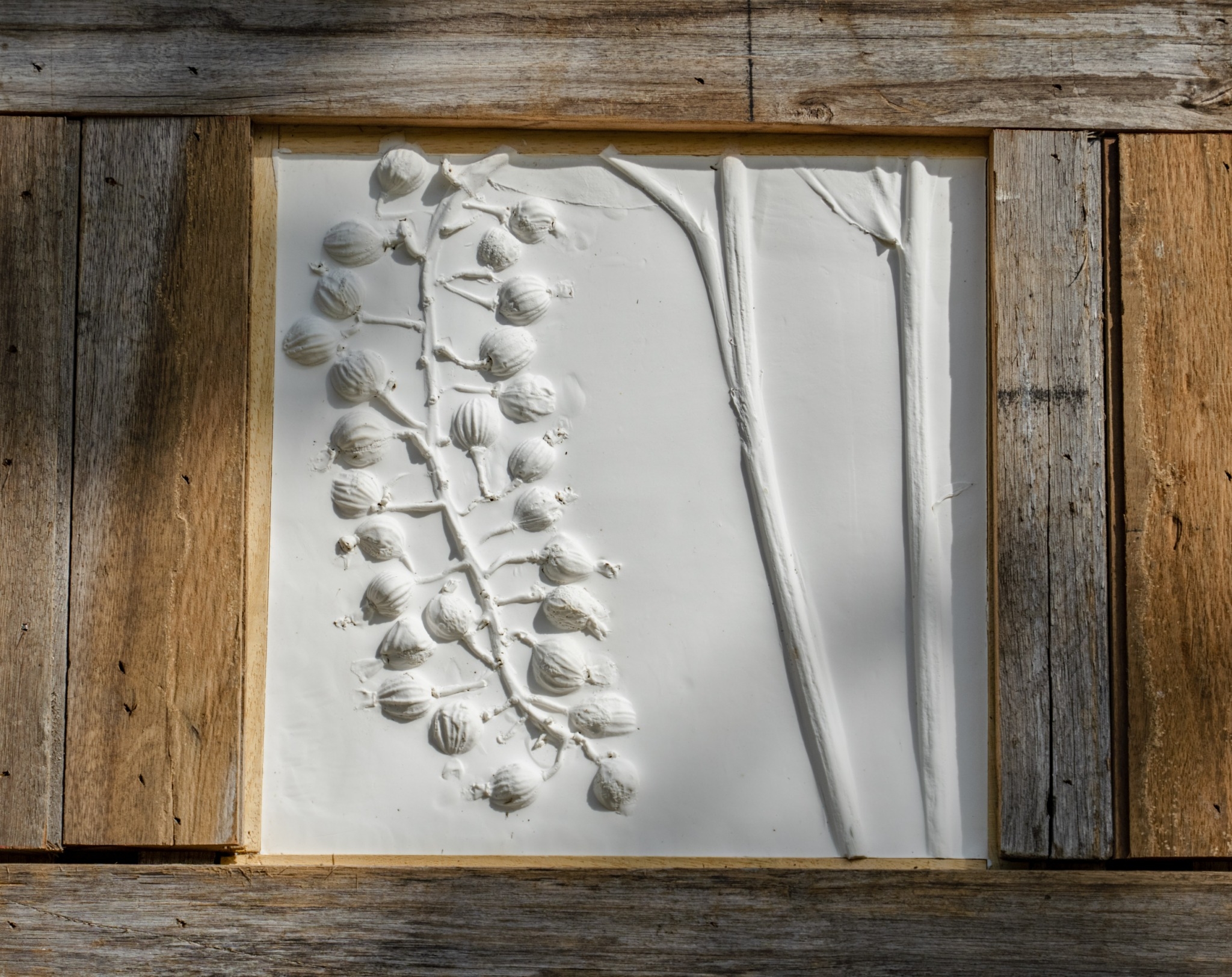 三天兩夜的工作營讓藝術家們透過身體勞動學習部落的傳統技能,留下深刻印記,再被轉化為創作養分。新社部落藝術家陳淑燕「一起來吧!土地上的”染”」,邀請新社部落族人一起參與染布,用『染』來連結人與土地的親密關係。羅婕如與黃俊男的「山海同坐」運用茶席的元素,展現部落面海山景,並以藍染布被風吹的靈動中,展現日常變幻流逝的日常之美。排灣族藝術家張恩滿「植物誌轉印術-給離鄉族人的備忘錄」以部落的植物拓印和廢板材,將居住部落和都市的族人生活經驗結合,藉此記憶並以備忘錄(MOU)做為各方行動協議,補遺兩端,演示生態豐富島嶼當代史。