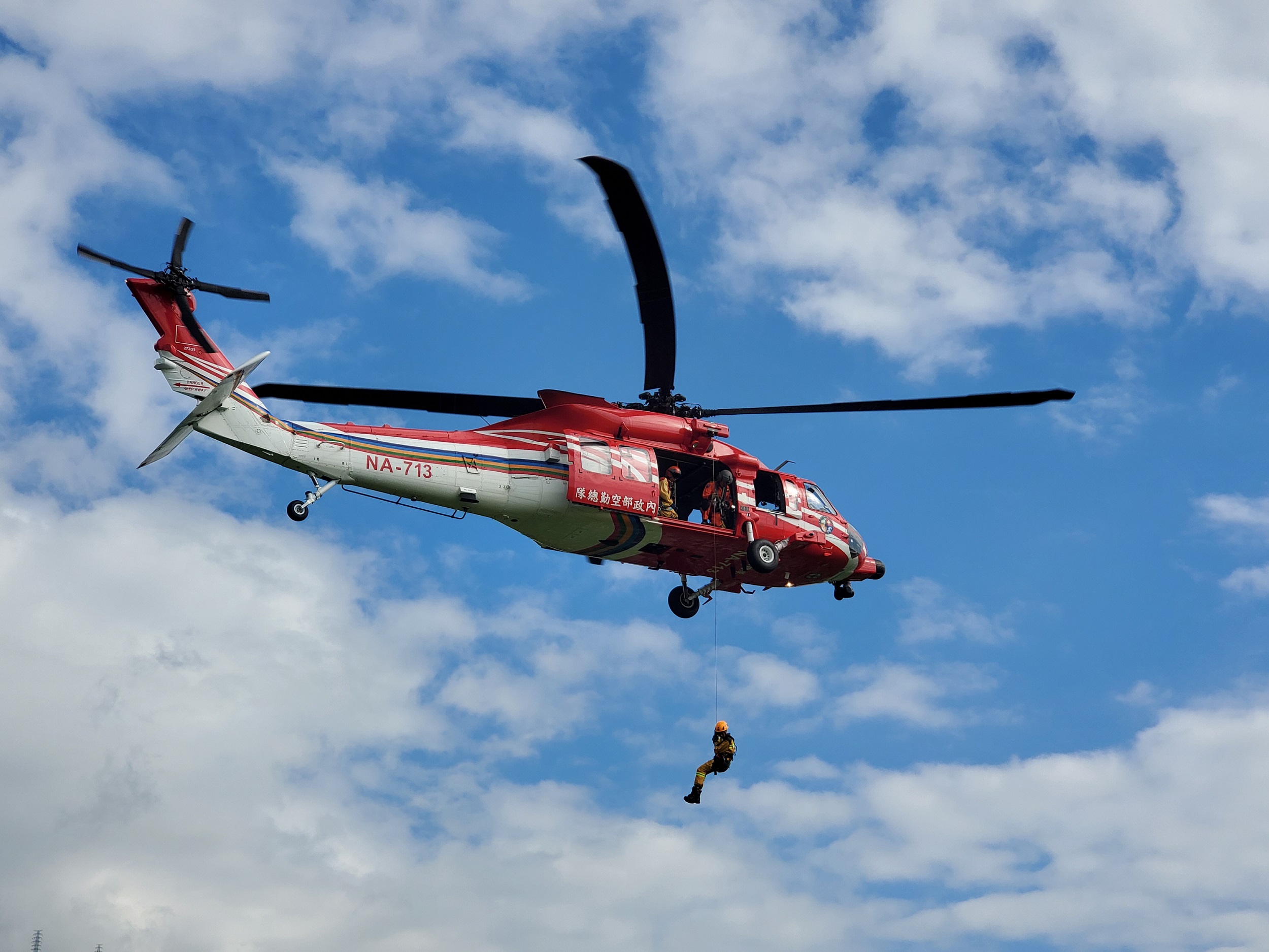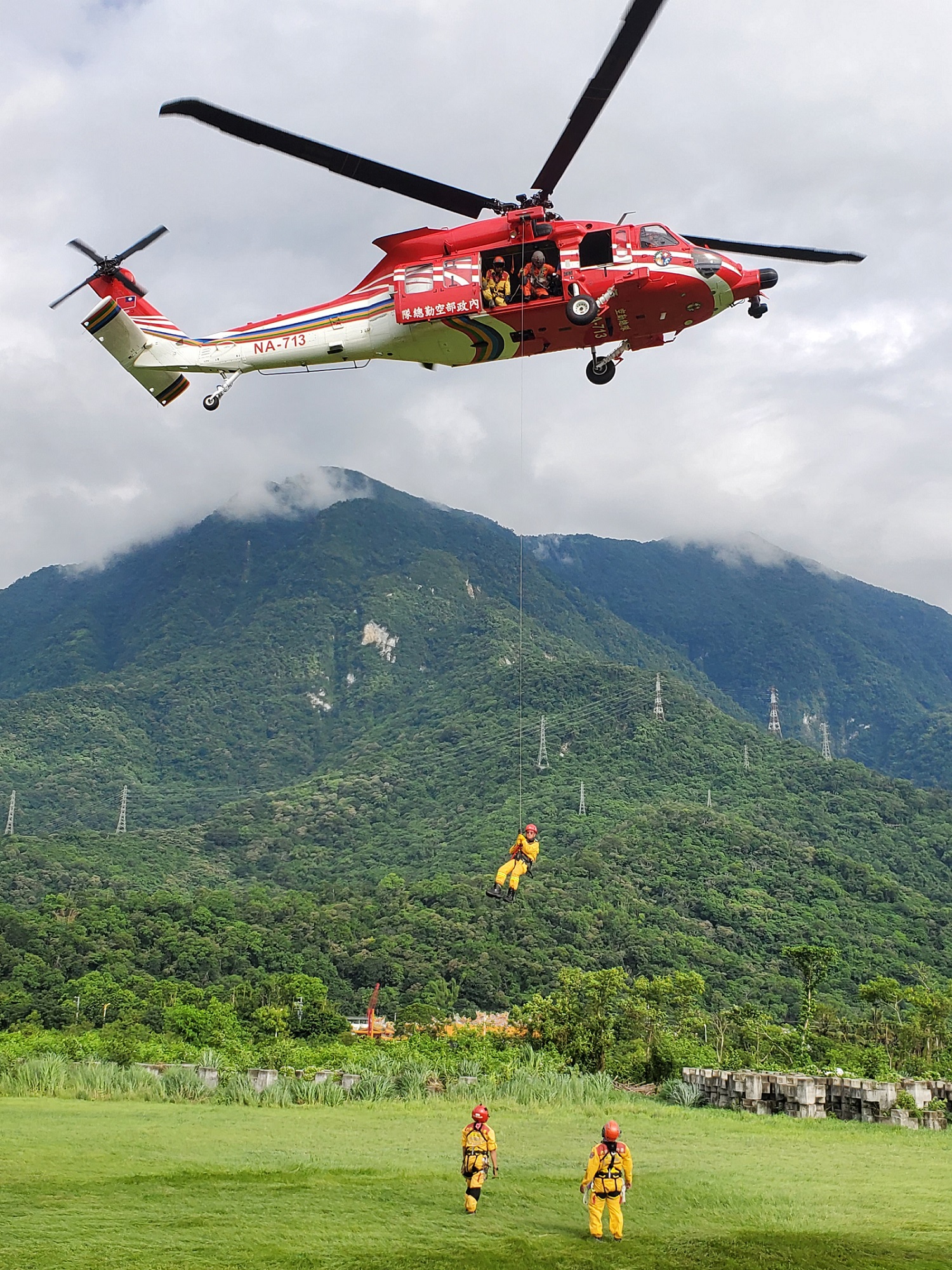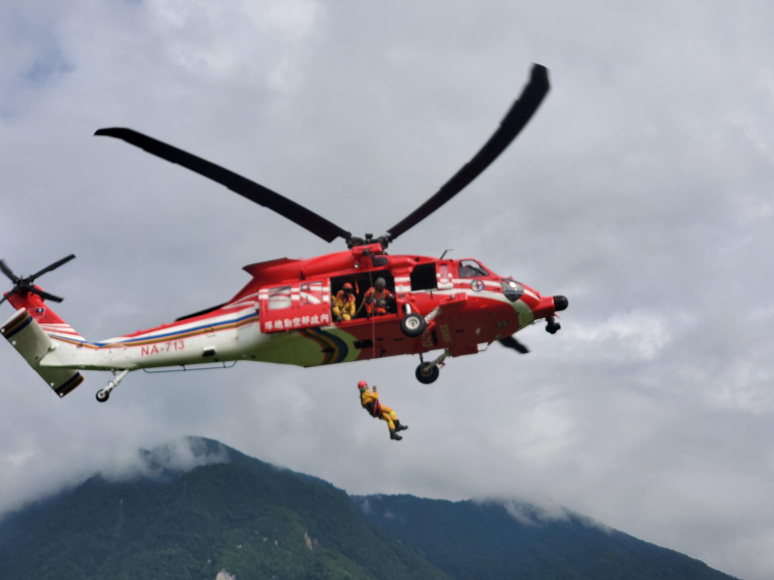 來真的!陸空聯合直升機吊掛演訓 超前部署強化森林火災防救技能