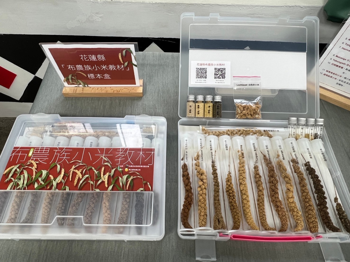 教材中介紹的小米種原,主要來自Fogg博士於1977年採集的品種,及已故成功大學生命科學系張松彬教授於2006年所採集的種原。1977年,Fogg在臺灣的5個民族、12個部落進行小米研究,將100個種原帶回美國農業部種原庫保存,其中布農族占52個,包含「紅色」、「白色」、「綠色」、「黑色」及「松鼠的尾巴」等罕見品系,展現過往布農族小米生態的多樣性。