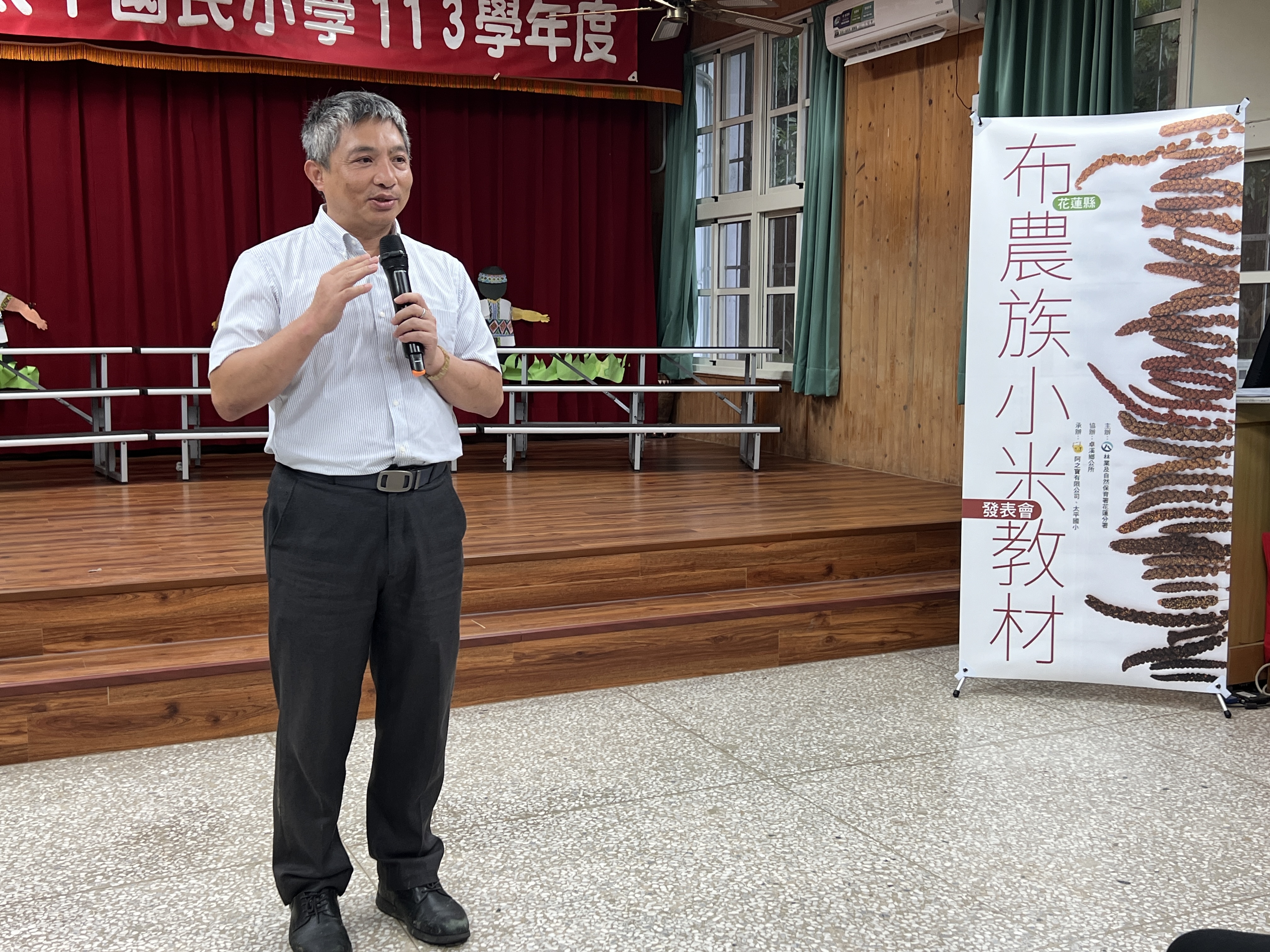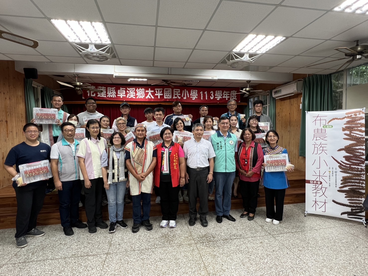為推廣與保存臺灣原生種小米、讓生物多樣性得以延續,林業及自然保育署花蓮分署與阿之寶有限公司自112年起攜手花蓮縣卓溪鄉部落族人,重新種植布農族小米,並製作「布農族小米教材」,24日在卓溪鄉太平國小辦理發表會,由分署長黃群策贈與花蓮縣25所國民中小學,期待讓布農族獨特的小米文化向下扎根,成為部落核心價值,傳承原住民族傳統智慧。