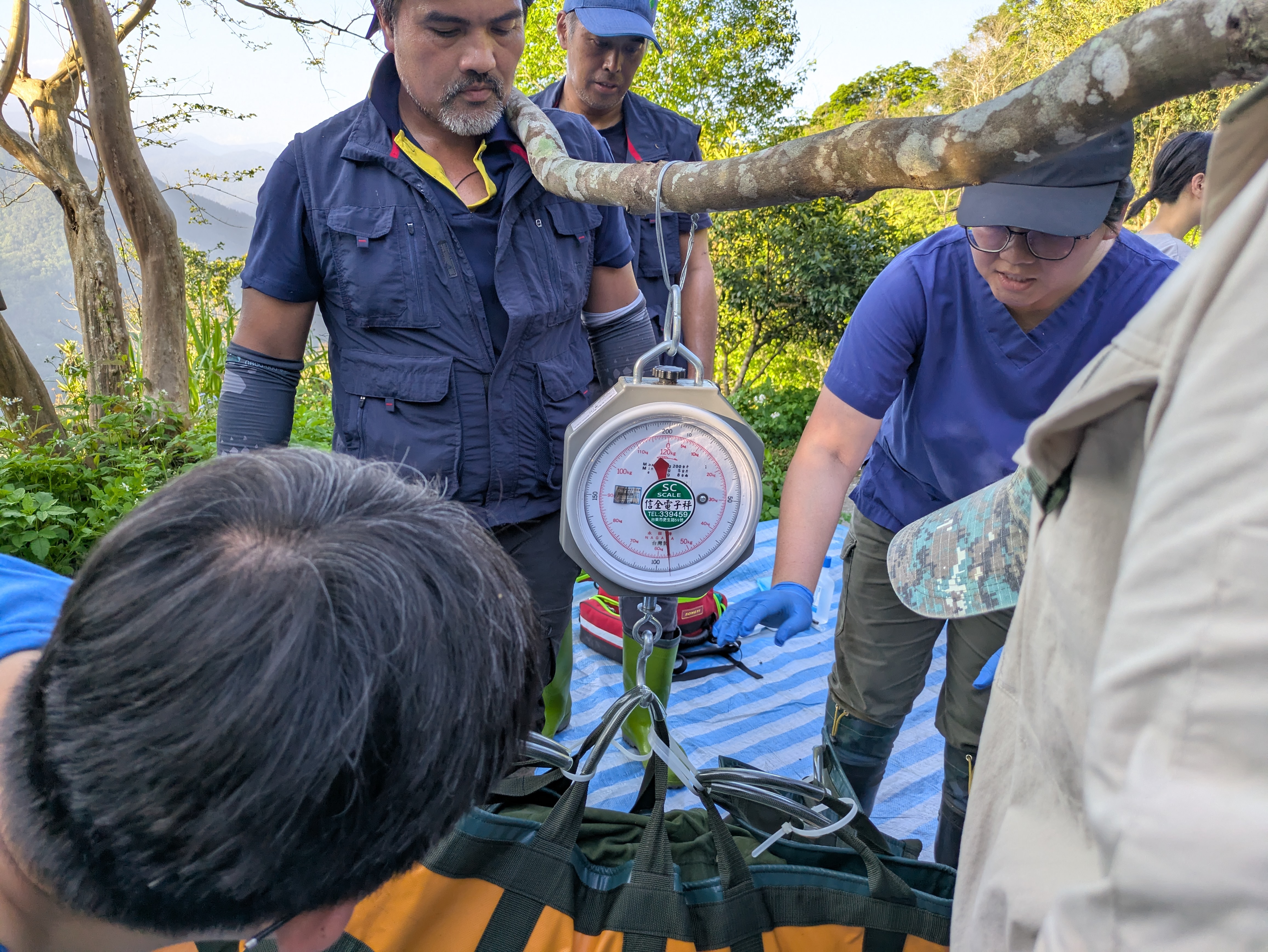 由於目擊者表示附近尚有另一隻體型較小的黑熊,但受困母熊經檢查並無泌乳情形,花蓮分署為慎重起見,今早邀請野聲環境生態有限公司人員一同到現場佈置4個氣味站、4台自動照相機,以及2個桶狀陷阱,希望釐清是否尚有另一隻黑熊以及其體態狀況。
