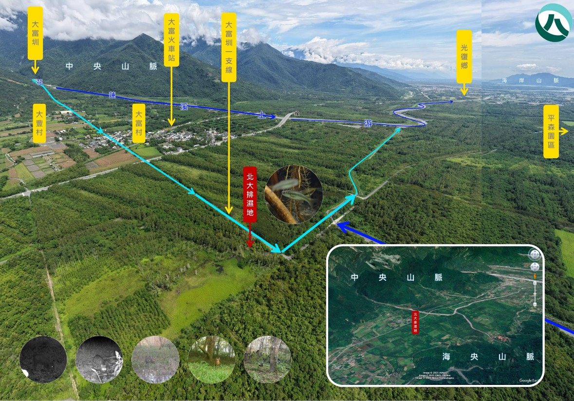 花蓮分署長黃群策表示,大農大富平地森林園區擁有1,250公頃平地造林成果,透過國土綠網計畫指認出具有生態廊道功能,能串聯中央山脈與海岸山脈兩大生態系統,是國際上少見的大尺度生態廊道案例,可以提供縱谷兩側中大型哺乳類野生動物可以移動甚至生活的棲地,近年更是記錄到水鹿、野山羊等。北大排濕地除了瀕危魚類保育外,也是生態廊道內的重要水域棲地可以提供不同生物棲息像是蜻蜓、兩棲類等。他強調,這不僅是生態保育的行動,更希望藉由工作坊培力周邊居民,讓在地社群成為國土綠網的重要夥伴,建立長期穩定的公私協力模式。