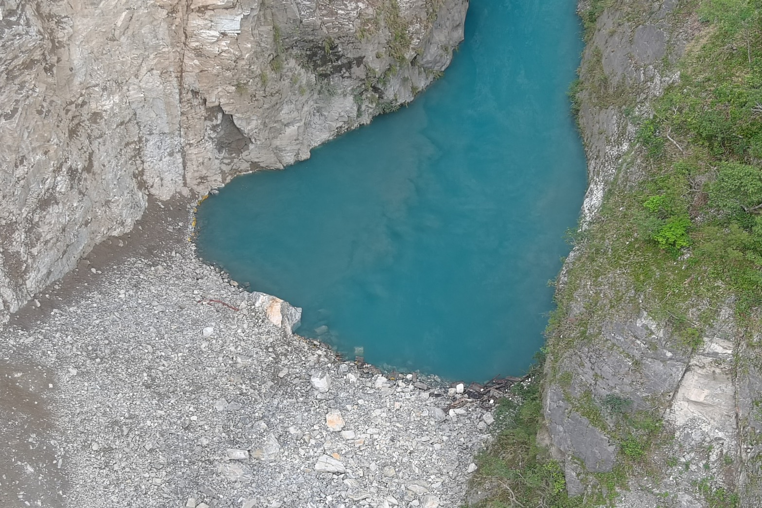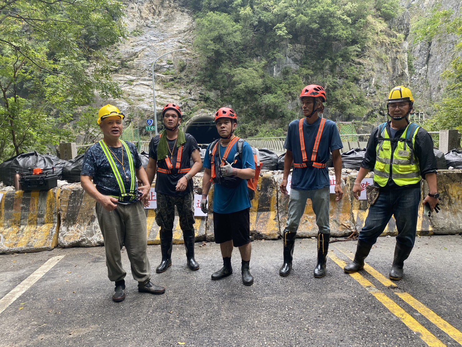 《立霧溪燕子口堰塞湖》 一、今(10/24)日監測顯示,燕子口堰塞湖水位高程266.63公尺,距離壩頂溢流仍有約3.37公尺之高程,湖水面積為11公頃,蓄水量為191萬噸(滿庫為230萬噸),天然壩體積為32萬立方公尺。 二、近期堰塞湖水位穩定、壩體無異常,監測觀察壩體址部已有穩定滲流,經逐日空拍照片比對,滲流情形並無加劇。研判對下游居民暫無直接威脅;且氣象預報近日暫未有豪大雨將發生,經專業團隊評估,目前未達所訂「立霧溪燕子口堰塞湖警戒發布、避難、解除機制表」黃、紅色警戒條件,除台8線靳珩隧道西出口淹水路段及東出口至魯丹橋溢流水路段仍須持續封閉外,其餘範圍與對象於昨(23)日13時30分發布解除警戒通報,並發布新聞稿周知。 三、10/22已完成堰塞湖降壩工程招標,原施工廠商已現場結算並將施工機具退場;得標新廠商今日8時已進場分階段辦理降挖及導流工程,第1階段將採刷坡與開設導流水道方式,若水流順利導引可自然削弱壩體;如成效有限,將啟動第2階段降挖作業,以進一步降低水位與蓄水量。 四、未來將持續監測水位、降雨量變化、壩體滲溢及橋面溢流等狀況,如有危險立即發布緊急通報單、細胞廣播簡訊及新聞稿,通知各單位及民眾加強警戒。