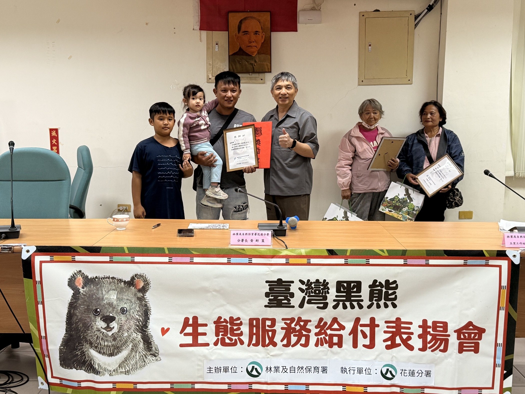 花蓮縣卓溪鄉清水部落自9月26日起又發生臺灣黑熊連續入侵雞舍事件,造成雞農損失並引發居民恐慌。林業及自然保育署花蓮分署接獲通報後隨即展開監測、驅趕,進而誘捕,終於在10月5日清晨成功捕捉該侵擾黑熊,並於獸醫檢查確認健康後,立即載運至遠離部落的林道深處野放。花蓮分署黃群策分署長昨(29)日前往玉里工作站頒發獎勵金,感謝3戶部落族人即時通報與積極協助,使黑熊得以安全移置,也守護了部落族人的生活安全。 花蓮分署說明,曾經發生黑熊入侵家裡附近雞寮的田姓夫婦通報,又有台灣黑熊於9月26日及30日連續兩次入侵清水部落雞舍,造成雞隻損失。經花蓮分署監測、驅趕後,又分別接獲沈姓及高姓等兩戶民眾通報被黑熊入侵,花蓮分署立即指導民眾移除可能吸引黑熊的食物來源,並架設4G即時相機監測,同時結合「花蓮縣卓溪鄉Saiku部落發展協會」成立巡守隊輪值巡查。經過三日誘捕後,終於於10月5日凌晨成功捕捉侵擾個體。經現場獸醫檢查,該黑熊為體重78公斤成年公熊,僅左前肢中安全套索且無外傷,隨即以耳標標記後野放於深山林道,過程安全順利。 第一位通報人田姓民眾表示,這次是第二次通報有黑熊入侵雞舍,上次是兩年前,也配合政策停養一年。為了兼顧生計及保育,會盡力配合林保署的方法,希望黑熊不再靠近。第二戶高姓民眾第一時間發現飼料被拖出,機警地立即通報玉里工作站護管員;第三戶沈姓民眾在第一時間發現雞隻死亡,當下難免害怕,但因平時玉里工作站多次進行人熊衝突防範宣導,讓他能迅速辨識異狀並即時通報,也因此避免了人熊衝突事件的發生。沈姓民眾後續亦協助現場黑熊捕捉相關作業,展現部落居民積極配合與保育意識的提升。 今日表揚會中,卓清村何村長秋明與林代表惠婷也特別與會觀禮,村長並呼籲村民如遇見黑熊時應冷靜應對、避免激怒攻擊,務必立即通報主管機關,並積極配合政府防護及保育政策,共同維護人熊安全與社區安寧。 此外,卓溪鄉近期也將籌組「狩獵文化與生態共管協會」,期望透過在地族人共同參與狩獵自主管理機制,推動合法且永續的狩獵文化傳承,同時強化野生動物保育及山林資源共管機制。未來該協會的成立,將有助於人熊共存政策的推動與在地保育工作的落實,促進社區、族人與自然之間的良性互動。 花蓮分署表示,此次黑熊事件歷時十日,期間部落族人積極通報、協助監測,並配合移除吸引源及加裝電子圍籬、感應燈等防護措施,成功降低風險。為感謝族人即時通報與協力合作,分署依「臺灣黑熊生態服務給付方案」頒發通報及監測獎勵金,並依規補償雞舍損失,展現人熊共存、社區合作的典範。 黃群策分署長強調,臺灣黑熊是山林生態系頂級掠食者,若因食物誘因接近人類聚落,極易發生人熊衝突。花蓮分署正推動家禽場電牧器圍籬補助計畫,並加強廚餘、飼料及垃圾管理宣導,協助農戶強化雞舍結構與夜間防護,以減少黑熊覓食誘因。未來也將與卓溪鄉Saiku部落發展協會等社區持續合作,建立即時通報及巡守網絡,共同守護山林安全。 花蓮分署呼籲,民眾如發現黑熊入侵、受困或活動跡象,請立即通報林業及自然保育署花蓮分署0800-000930(您您您救山林),切勿私自處理,以確保人熊雙方安全。