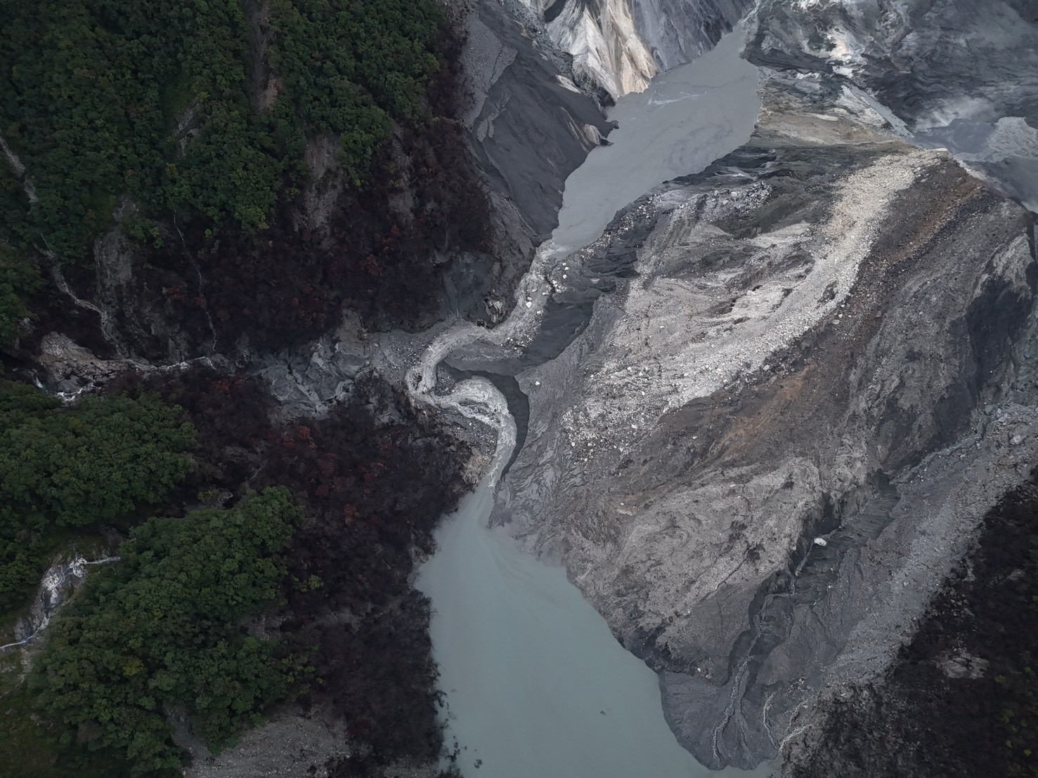 林業及自然保育署花蓮分署今(13)日清晨6時30分運用無人機空拍發現,馬太鞍溪堰塞湖溢流口下方約300公尺處新增一處堰塞湖,研判為今日凌晨2時53分右岸邊坡土石滑動、阻塞河道所致,目前持續蓄水中,若以每小時入流量8萬噸預估,今日16時即可能蓄滿溢流,花蓮分署正嚴密監測。
