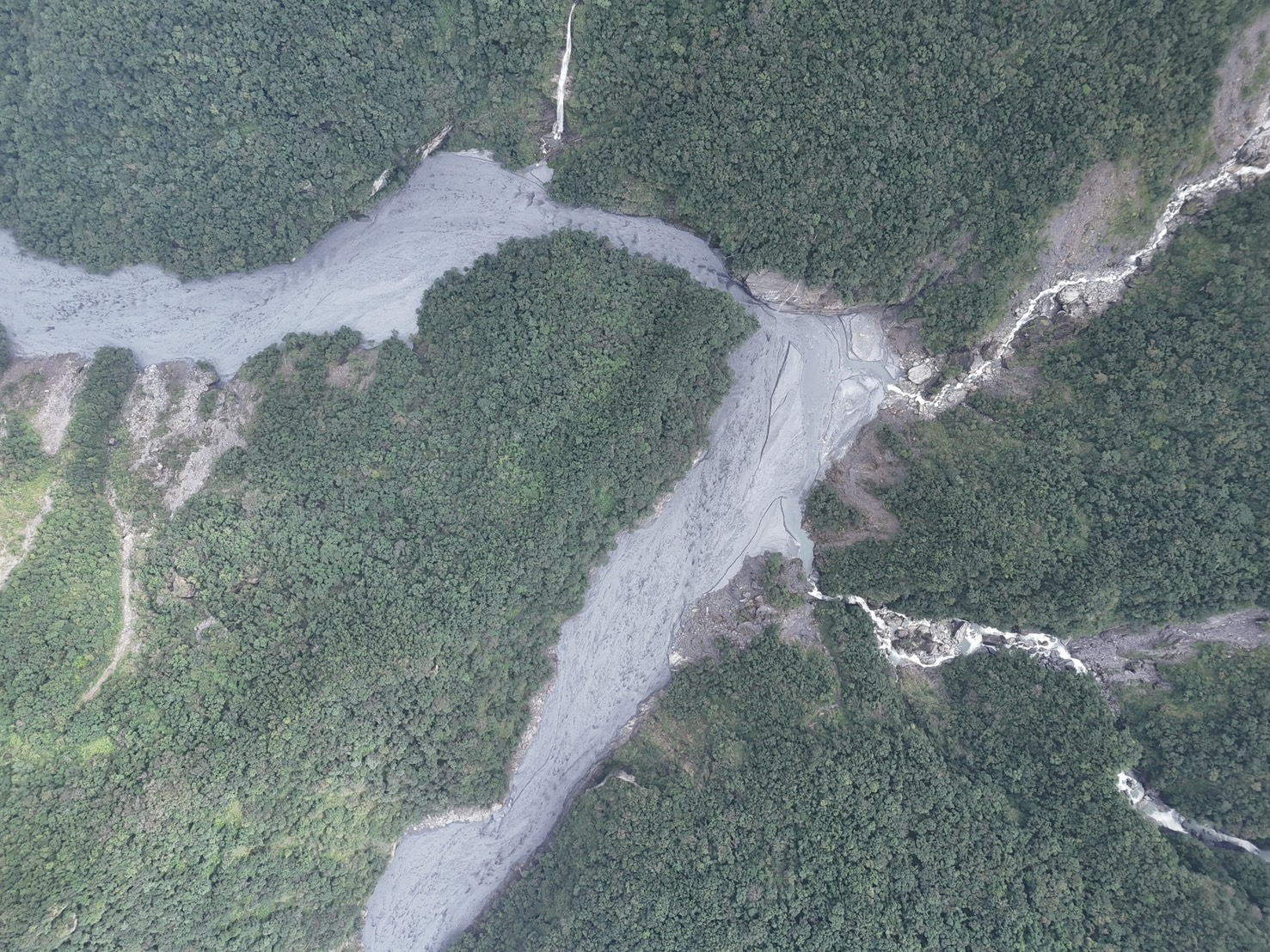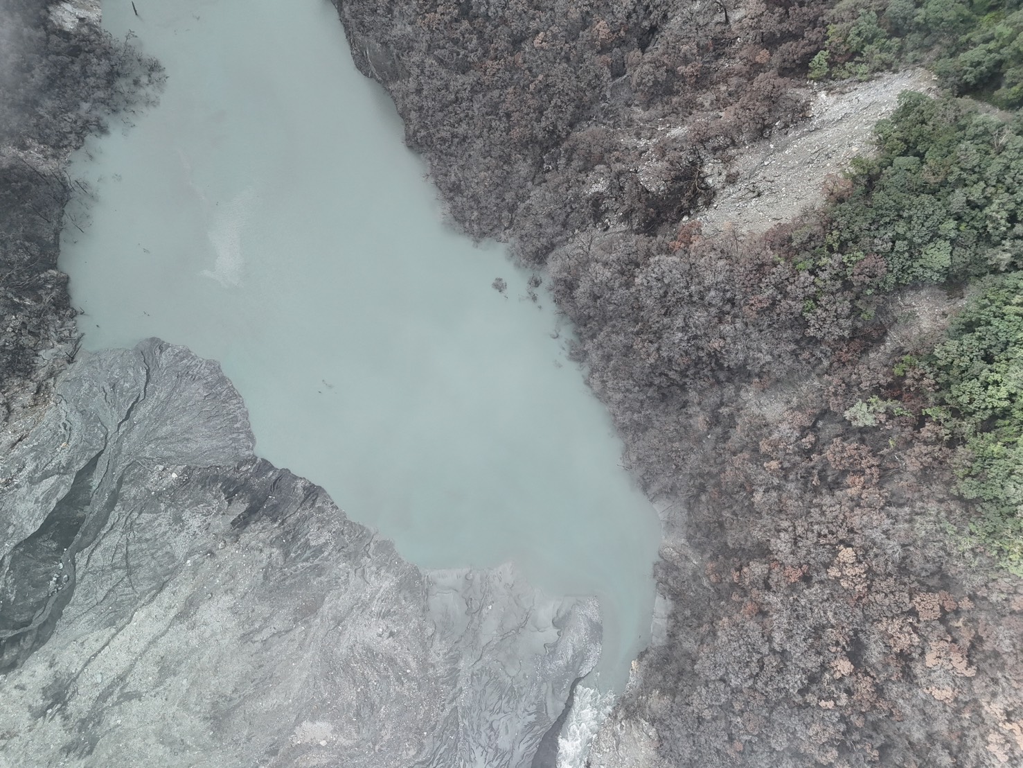 林業保育署花蓮分署表示,今日中午天氣晴朗後立即進行空拍,結果顯示新、舊堰塞湖量體已明顯縮小且持續溢流,溢流口及兩側邊坡均無崩塌或堵塞情況,下游河道水位穩定下降,整體水勢尚在可控範圍。