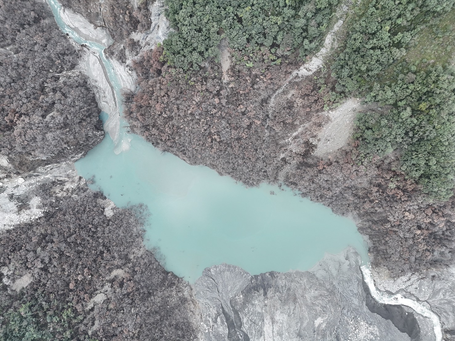 馬太鞍溪堰塞湖水位穩定下降 林業保育署持續密切監控壩體