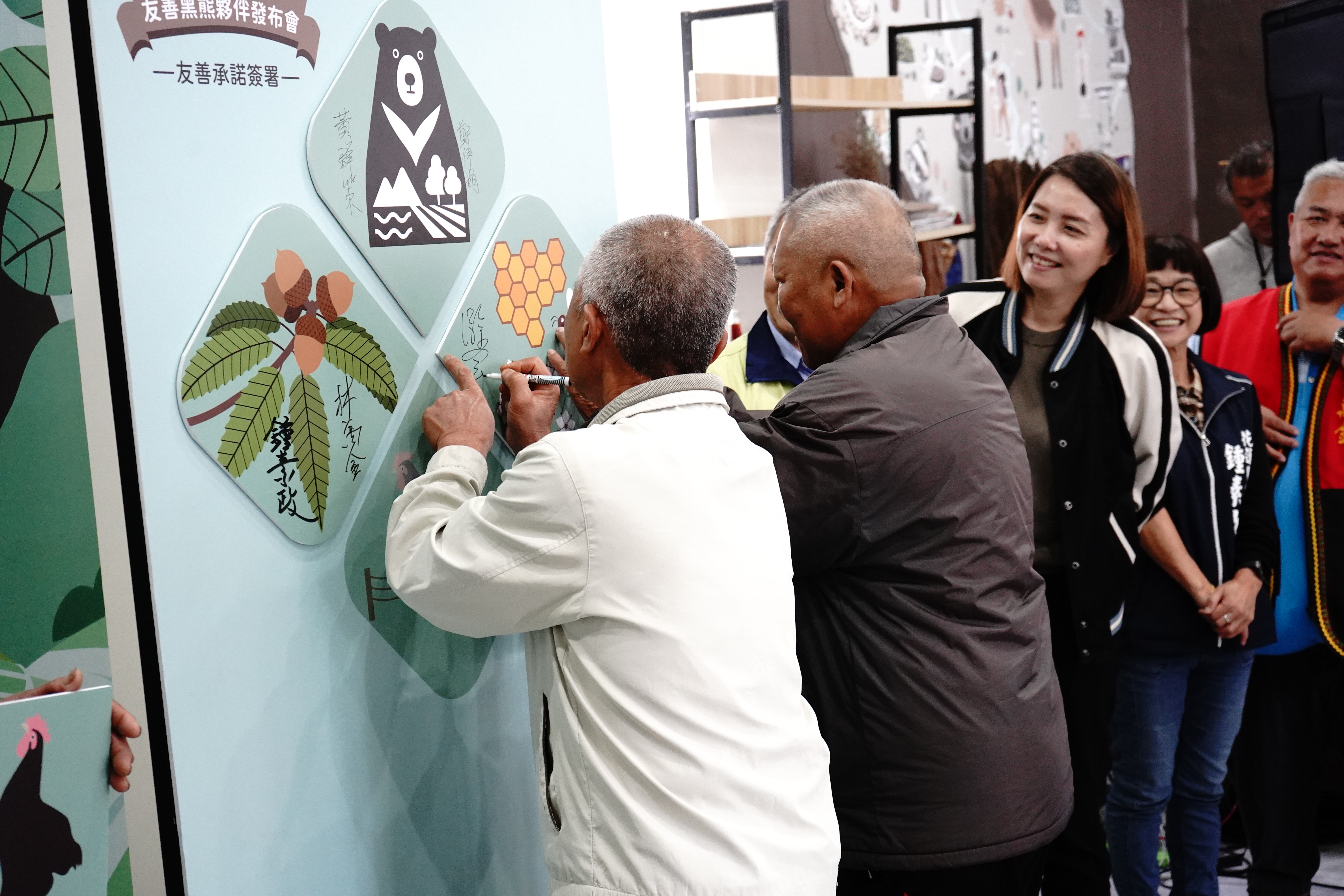 為協助因臺灣黑熊活動頻繁而面臨雞舍、蜂場時遭侵擾的卓溪鄉社區從「衝突」邁向「共存」,農業部林業及自然保育署花蓮分署今(26)日於卓溪原住民產業服務中心舉辦「保育柑仔店暨友善黑熊夥伴」發布會,邀集在地友善黑熊農友及保育柑仔店店家共同簽署友善承諾,宣示社區與政府攜手守護山林的決心。 花蓮分署指出,「保育柑仔店」與「友善黑熊夥伴」為兼顧保育與生計的社區共榮模式,透過友善飼養、換發改良式獵具、人熊共存電圍網等措施,降低黑熊與人類活動的衝突風險。未來分署將持續推動生態給付、教育宣導與社區培力,讓卓溪鄉的人熊共存模式成為全臺指標案例。 分署長黃群策進一步說明,將部落最熟悉的「柑仔店」轉化為友善保育據點,讓民眾能在店內兌換改良式獵具,並獲得友善環境資訊。目前卓溪鄉共有六村七處保育柑仔店,包括珍閎商店、玉泉商號、卓溪商號、三立商店、智榮商號、恩平商號與卓清村村長合作據點,使保育意識在日常中萌芽,並有效降低陷阱誤捕風險。 花蓮分署同步串連在地雞農與蜂農,共同推動友善管理措施,組成友善黑熊夥伴。參與農友包括古麗莉、陳文德、沈水土、沈子恒、蔡玉花、江國光、陳保存、池明鎮、池明典、池宥葳及廖瑞雲等11人,他們以實際行動落實人熊和平共處。 今日感謝卓溪鄉立山村三笠山部落何智超,在11月9日通報目擊黑熊抓雞侵擾,分署立即派遣人員前往勘查,並設置紅外線照相機監控及佈設2組誘捕籠,並順利在當天晚間9時46分成功捕獲,將黑熊後送東部野生動物救傷中心野灣動物醫院檢查個體狀況,頒發台灣黑熊生態給付通報獎勵金。 今天的卓溪原住民產業服務中心,部落在地各方代表齊聚一堂,林業保育署鄭伊娟簡任技正、卓溪鄉公所林萬金秘書、花蓮縣縣議會鍾素政議員等代表共同參與發表會,活動參點由「潘朵拉的盒子手作工坊」以友善農特產品研製創意料理,運用雞肉、蜂蜜與卓溪柚子推出舒肥咕咕迷你堡、蜂巢蛋糕及蜂蜜柚香飲品,展現友善行動融入食農生活的可能性。 花蓮分署強調,卓溪鄉已展現全臺最具代表性的「人熊共存模式」。從地方出發、以社區行動實踐尊重自然與珍惜萬物的精神,正是「友善黑熊夥伴」最重要、也最珍貴的核心價值。