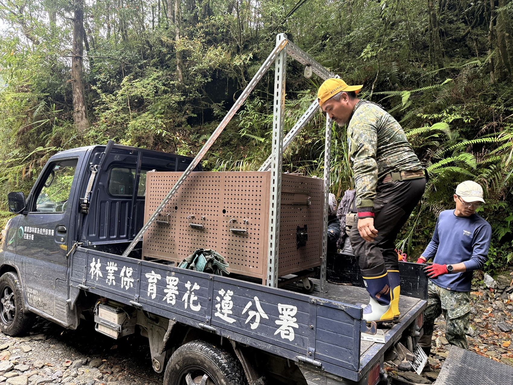 花蓮縣卓溪鄉太平村一對臺灣黑熊母女,歷經逾一年救援、醫療、照養與野化訓練,於今(8)日同步野放重返山林,締造臺灣首例「母女熊同日野放」案例,為臺灣黑熊救援、照養及野放工作累積寶貴經驗。 林業及自然保育署花蓮分署表示,去(114)年3月接獲通報,一隻成年母熊於山區誤中套索陷阱,花蓮分署隨即會同野灣東部野生動物救傷中心醫療團隊及在地族人展開救援,並成功送抵中心治療照養。由於過程中,族人另通報附近還看到有幼熊徘徊,經花蓮分署設置紅外線自動相機監測確認後,於同年3月30日成功捕捉當時體重僅11.5公斤、尚未離乳的幼熊,後續並經分子生物學鑑定確認兩者為母女關係。 花蓮分署指出,幼熊因當時尚未離乳,由野灣團隊持續接手照養並進行營養補充,至今(115)年3月健康檢查時,體重已成長至46公斤,各項評估均顯示已具備野外生存能力。母熊則經手術治療恢復後,整體健康狀況穩定,體重已達74公斤,符合野放條件。 花蓮分署說,團隊曾於去年6月至7月間嘗試安排讓黑熊母女重新接觸與共同生活,惟經持續觀察,兩者互動有限,並未展現明顯的親子關係,因此後續改採個別照養與訓練。幼熊自去年10月起進入森林野訓場進行野化訓練,訓練內容包括覓食、攀爬、環境適應及對人類趨避反應等能力培養,最終順利通過野放評估。 為審慎推動野放作業,花蓮分署已於今(115)年3月11日在卓溪鄉中平部落辦理野放前說明會,向族人完整說明母女熊救援歷程、野放評估依據及後續監測管理方式,獲得多數族人理解與支持,並表達願意共同參與野放後的通報與應變工作,朝人熊共存目標持續努力。 花蓮分署表示,今日順利於卓溪鄉中平林道18公里處,先後野放這對已配戴衛星頸圈的母女熊。野放前,特別由卓溪鄉田清興總頭目主持祈福及命名。依據布農族傳統,為熊命名代表將其視為部落族人的一份子,希望人熊和平相處,因此將母熊命名為「烏莉(Uli)」,意為賢妻良母,小熊命名為「慕娃(Mua)」,意為可愛溫馴的小女孩,象徵對其回歸山林的祝福與期盼。田頭目亦祈願兩熊回到森林能在山林中持續繁衍、生生不息。 儀式完成後,團隊即中平林道行車終點進行野放作業,並採人不下車、減少人熊接觸的方式進行。在野放小母熊後,約半小時後再野放成熊,母、女兩熊在出籠後皆快速離開,往森林深處消失身影。 花蓮分署指出,野放後將透過衛星頸圈與電子圍籬系統持續監測黑熊活動情形,並與卓溪鄉太平村長建立資訊回傳機制,及時提供黑熊活動軌跡,讓部落民眾掌握黑熊動態;如黑熊進入電子圍籬範圍內,也將即時啟動預警及防範措施,強化部落安全與應變準備。 花蓮分署表示,黑熊進入聚落多與食物吸引源有關,近年已持續推動「臺灣黑熊生態服務給付」、「保育柑仔店」及電圍網設置等措施,並強化社區通報機制與食物吸引源管理,逐步降低黑熊進入人類生活空間的機會。 花蓮分署呼籲,民眾若發現黑熊蹤跡或侵擾情形,應立即通報,落實「通報無罪」原則,切勿私自捕捉或處置,共同維護人身安全與生態保育。通報專線0800-000930(您您您救山林)。